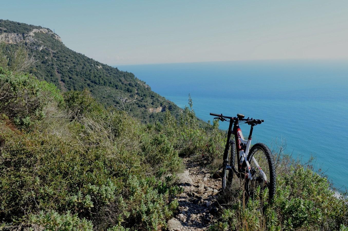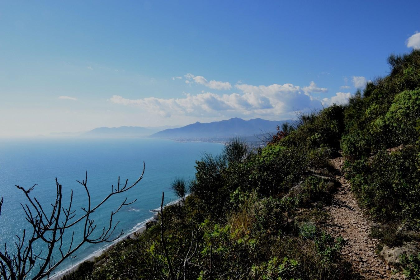 se no si continua tranquillamente verso nord, siamo ora sul versante che guarda verso Borgio Verezzi e sullo sfondo ecco la sagoma dell’isola Gallinara e il promontorio di Capo Santa Croce.