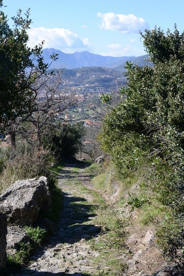 Dall’antica porta di Finalborgo si attraversa il torrente Pora si svolta a sinistra sulla strada provinciale e dopo un centinaio di metri si incontra a destra l’inizio della strada napoleonica, realizzata verso la fine del 18° secolo per permettere il transito delle artiglierie della Grande Armee, in realtà il tracciato è molto più antico ricalcando un vecchio percorso medievale impostato sull’antica via romana Julia Augusta.