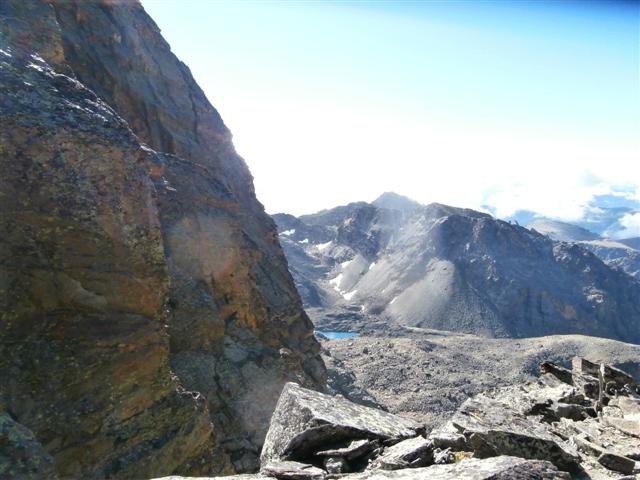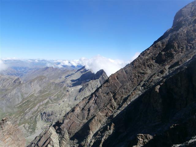 Stamattina alle 6 solo 9° a Castello: bene si sale al fresco e anche veloci. Sentiero per il bivacco Berardo rimesso a nuovo, ma sempre con pendenze redditizie e dopo circa 10 minuti di sentiero verso il Boarelli si sale a sx (qualche rado ometto) verso il canale sud ben evidente: nonostante le piogge di ieri canale asciutto , ma da fare con cautela, muove tutto. Arrivo al colletto Guillemin e piego verso dx sulla cresta sud-ovest della Caprera: primi metri all’ombra rocce bagnate e verglassate rallentano un poco la marcia ma poi con il sole tutto migliora e si arriva alla bella croce di vetta. Gran panorama, per poco però: qui le nebbie sono di casa, il tempo di vedere in Monviso imbiancato da una leggera spolverata di neve e ,dopo una lunga sosta, riprendo la via del ritorno incontrando 3 persone che salivano (saluti). Oggi in solitaria