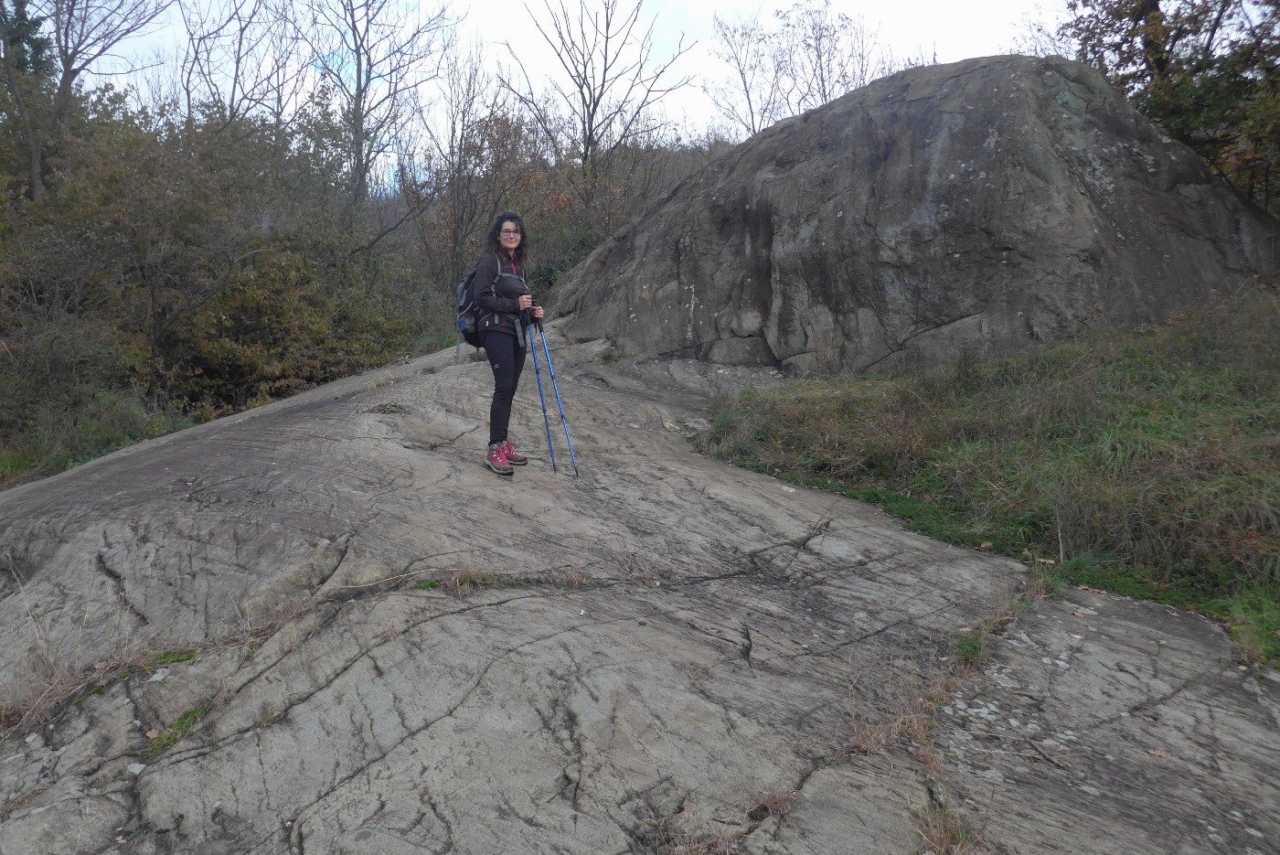 Tornati sotto le ultime rocce proseguiamo ora in discesa costeggiando in seguito il Roc di Pera Pian-a (a destra, monolite alto circa 20 metri). Al successivo bivio con breve digressione a sinistra si arriva a Pera Pian-a, un roccione lisciato dai ghiaciai.
