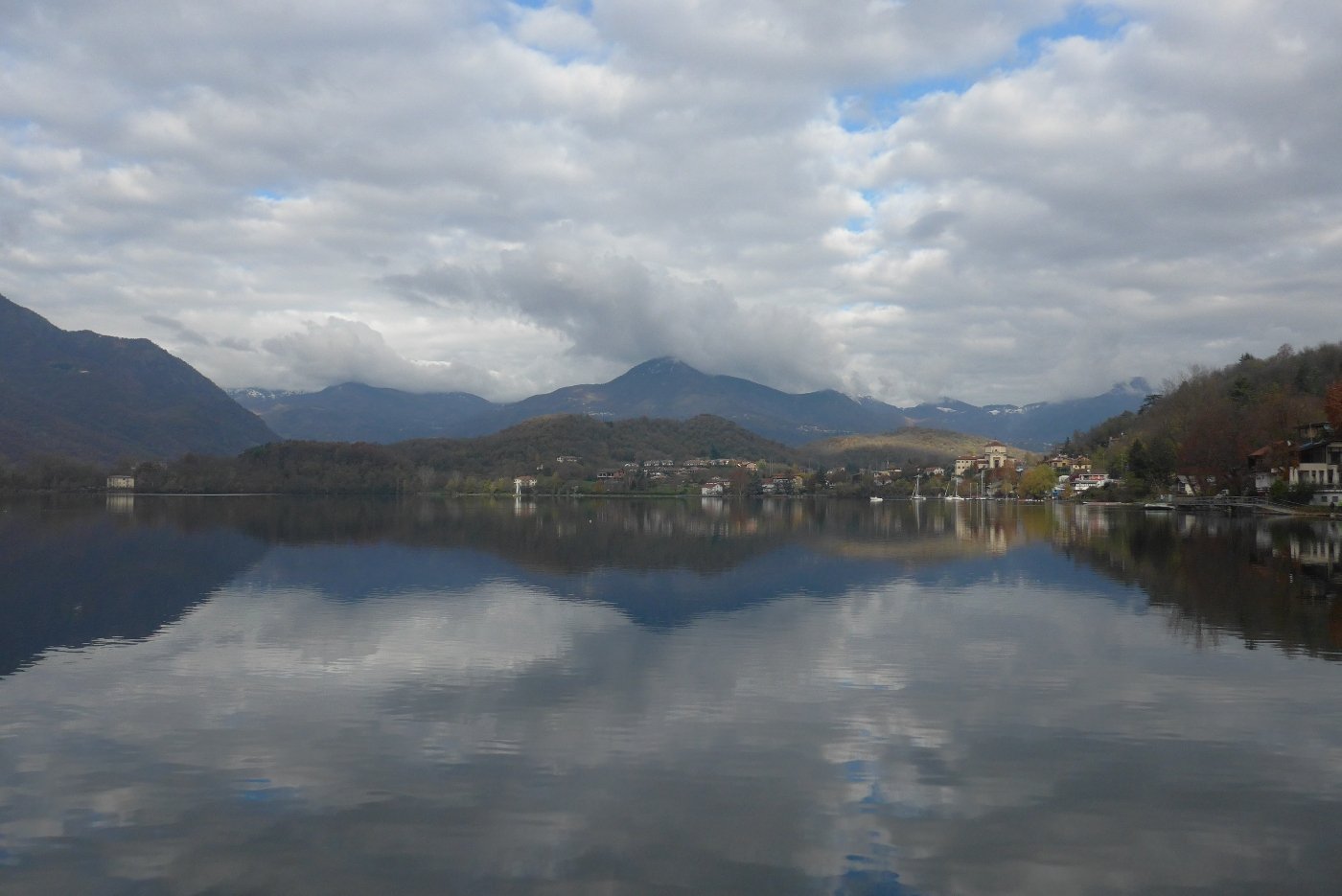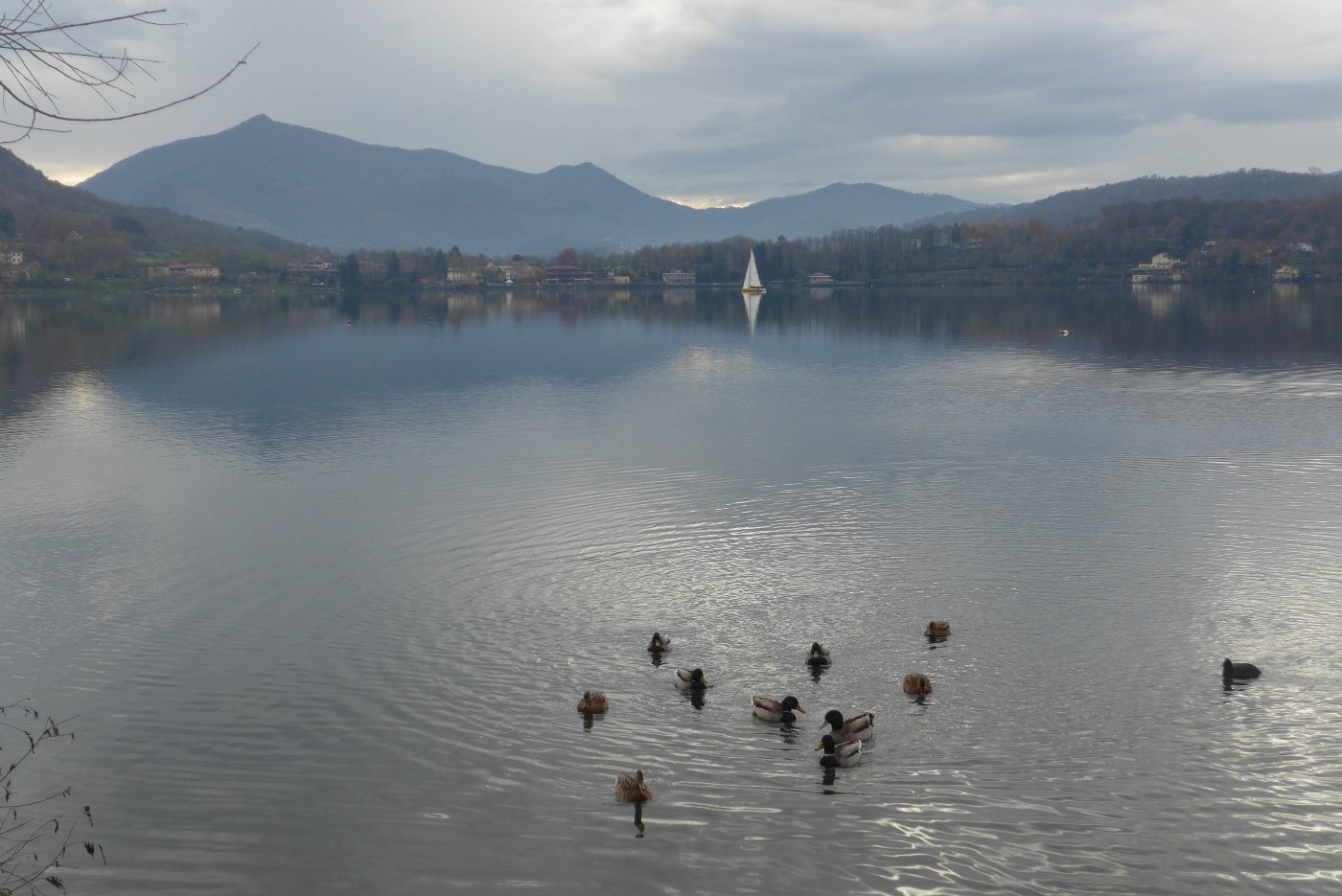 Raggiunto in breve l’asfalto si svolta a destra seguendo l’indicazione 501B, giungendo in breve ad un’area pic-nic . La si attraversa ancora in discesa giungendo così al lungolago che si segue in direzione Est in gran parte su pontili galleggianti. Raggiunta la sponda est la si percorre seguendo tutta il lungolago e giungendo al suo termine ad una rotonda dove si prosegue sulla ex Strada Statale che passa fra due alberghi.La strada lentamente gira verso sinistra giungendo ad una successiva rotonda. La si attraversa in direzione via delle Maddalene (cartello) in salita. Trascurando le varie stradine senza sbocco, al termine della via si imbocca un sentiero indicato come Via dei Pellegrini. Al successivo bivio si segue nuovamente l’indicazione Via dei Pellegrini, in piano trascurando il bivio a destra. In seguito il sentiero torna strada (via Micheletta) , si passa vicino al Tiro a segno, si gira a sinistra per pochi metri in via Oronte Nota e subito a destra in via San Pietro, fino ad attraversare corso Laghi.