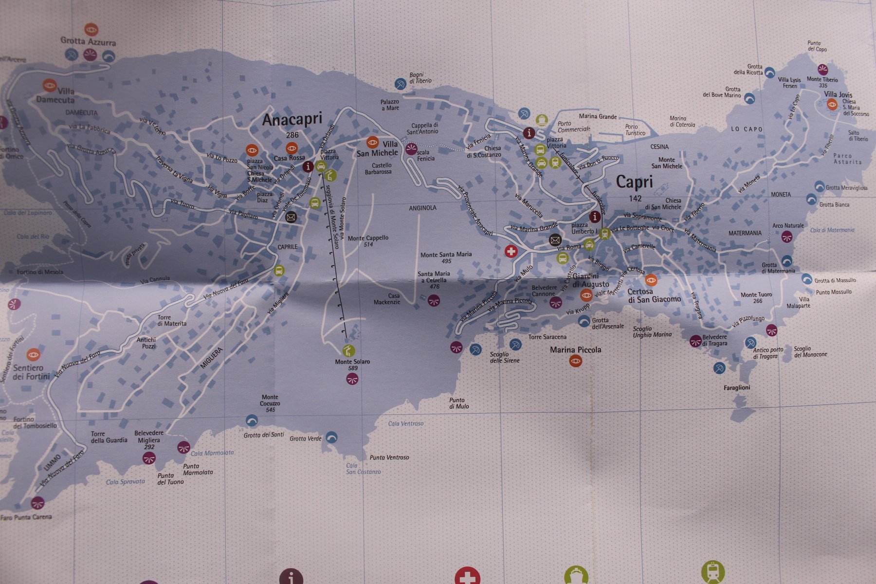 Da lì bella vista sull’ isola e sul M. Solaro. Si torna indietro per circa un km, dopo aver superato alcune trattorie, si gira a sinistra per l’ arco naturale (indicazioni sempre su piastrelle in maiolica sui muretti).