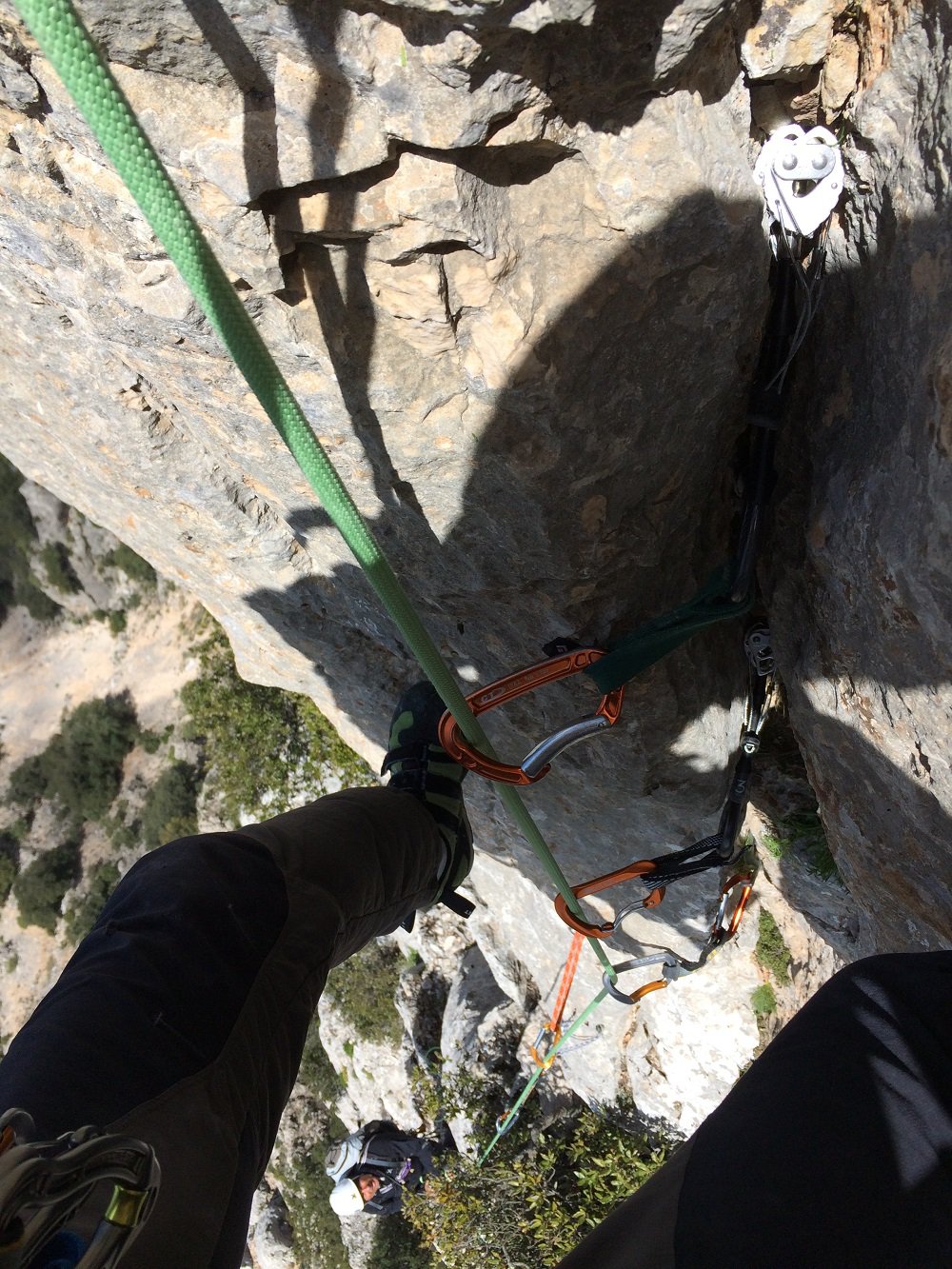 Successivamente, sono stati aggiunti alcuni spit alle soste, e pochi altri nei tiri più difficili, che incidono appena sull’ingaggio complessivo della via, soprattutto se non si possiede un buon margine sul grado e/o una buona capacità di integrare le protezioni.
