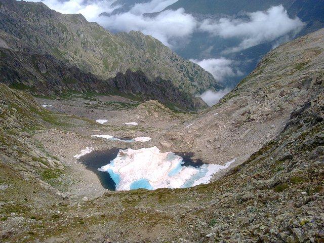 trovatomi solo x diverse circostanze, scelgo quest’altra gita-novità della stagione. Parto tardi per assicurarmi un minimo di ore di sonno dopo il venerdì sera.. ore 8,30 a S.Giacomo scarponi ai piedi. Dopo il lago del Vej e del Bouc non vedo + esseri umani, ma un sacco di animali: camosci, stambecchi,marmotte, tutti con i piccoli..che belli!!! Un centinaio di metri sopra il lago inizia a piovere, proseguo promettendomi di tornare indietro a balle rotte al primo tuono. Poi smette. Mi perdo alcune volte dalle parti del Passo come al mio solito, così i tratti + pericolosi li affronto proprio fuori sentiero.. una volta raccordato alla salita ufficiale tutto ok, il passo di II- è davvero easy. In cima (h 12,10) arriva anche il sole; la visibilità è stata ottima tutto il giorno.Mi fermo una mezz’oretta, poi giù a buon passo, prendo mezz’ora di pioggerellina (senza lampi, x fortuna) tra il gias sottano del Vej e del Bouc e l’inizio del bosco.