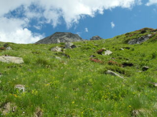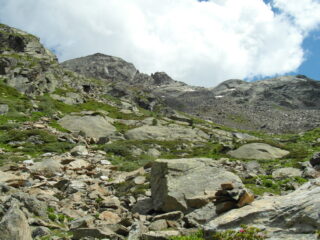 Escursione abbastanza lunga, ma molto interessante e bella, in ambiente molto poco frequentato e selvaggio. Ieri eravamo solo io e mia figlia. Si passa dalla valle dei principi che rimane sempre uno dei luoghi che mi piacciono di più. Gli ultimi 500 m di dislivello sono un po’ più impegnativi perchè i pendii che portano al roccione triangolare sono abbastanza ripidi e soprattutto franosi, per cui bisogna fare attenzione, oltre a non scivolare, a non fare precipitare sassi, specie se si è in gruppo. La paretina dopo il roccione non presenta difficoltà, anche in discesa. Dopo bisogna di nuovo fare attenzione a seguire gli ometti fino in punta camminando su terreno anche qui sempre abbastanza instabile. Dalla cime bel panorama, ieri con più nuvole verso il Piemonte , più sereno come al solito sul versante valdostano. Aggiungo che dopo il tratto di mulattiera / sentiero ancora segnato dopo avere lasciato l’alpe Brunnen sulla destra forse è meglio non proseguire con tempo nebbioso, perchè si procede seguendo gli ometti non sempre ben individuabili