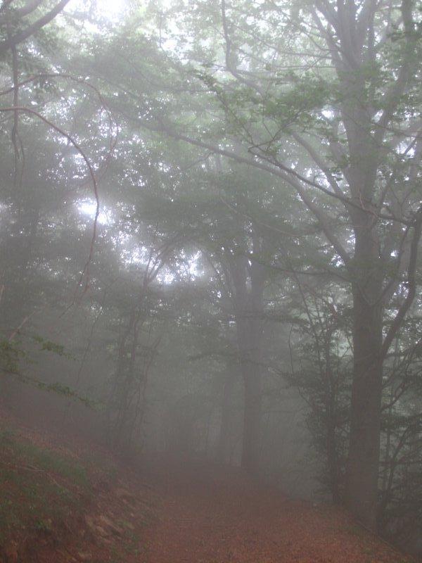 Il panorama è molto bello, con i maestosi boschi che si ergono tutto intorno e in fondo il mare. ATTENZIONE che il versante nord della rocca precipita vertiginosamente a picco sui sottostanti boschi.