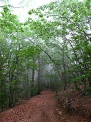 Qui attraversata la strada asfaltata si imbocca l’AVLM dall’altro lato e si prosegue in salita toccando il Bric Pagliarina m.1213 fino al Monte Carmo m.1389. Splendido panorama sul golfo ligure e i boschi della zona. Ora non rimane che tornare indietro sempre sull’AVLM fino al prato col bivio da dove siamo scesi dalla Rocca Barbena e continuare sulla l’AVLM, proseguendo sul sentiero di destra in piano, entriamo di nuovo nella maestosa faggeta fino ad arrivare al colle dello Scravaion.