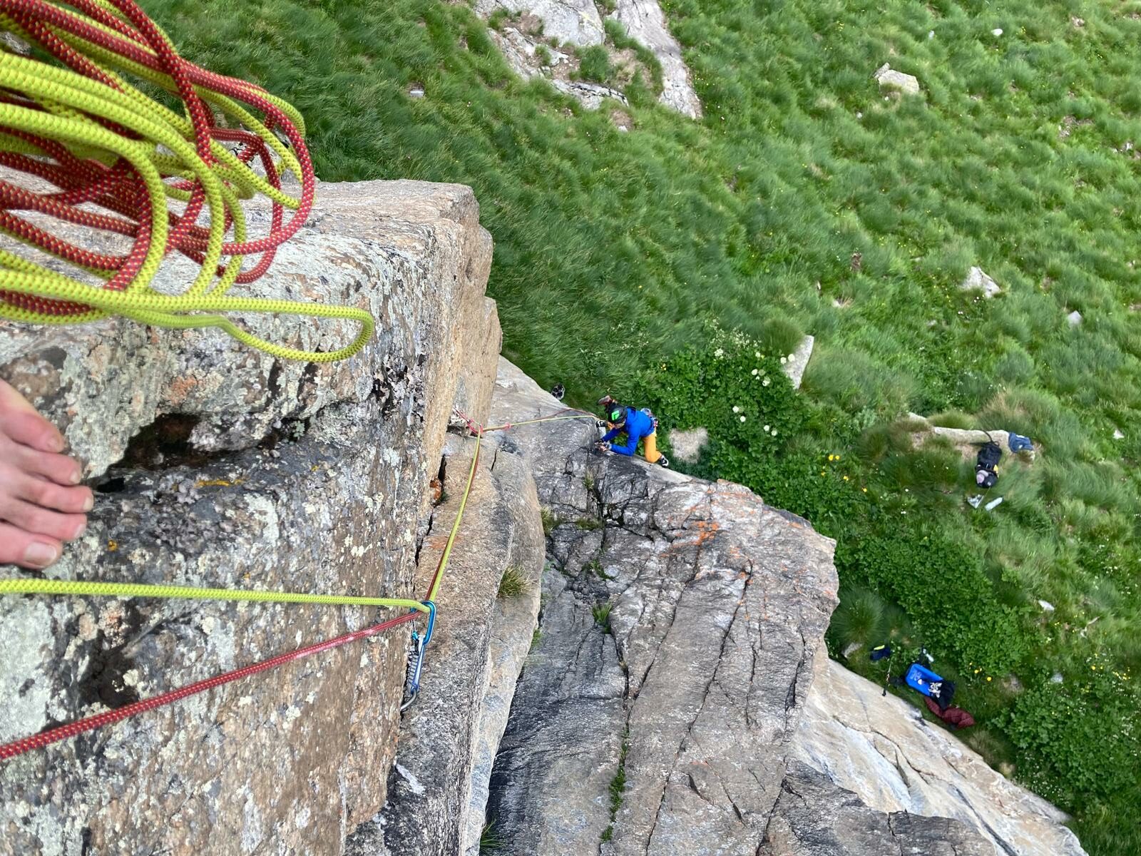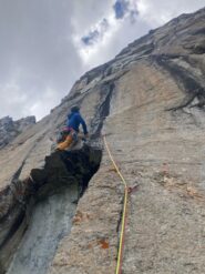 Materiale: serie di friend fino al n.3, nut, micronut e microfriend. Basta generalmente una corda intera da 70mt più magari cordino di servizio per sicurezza, o mezze corde.