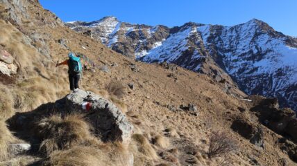 Il sentiero che collega gli alpeggi a volte attenua la sua presenza specie sui prati da pascolo, ma i segni non mancano mai. Arrivati all’alpe Charlemont (m.1996) i segni freschi lasciano il posto a segni di vernice più datata e sbiadita, ma il sentiero che svolta a sinistra è evidente e al raggiungimento del ripido costone finale che precede la cima si trovano abbondanti omini di pietra. Neve dura presente in soli due brevi tratti con esposizione meno soleggiata, ma ben evitabili, praticamente tutto il percorso si può dire privo di neve. Sulla cima il panorama ripaga pienamente la fatica.