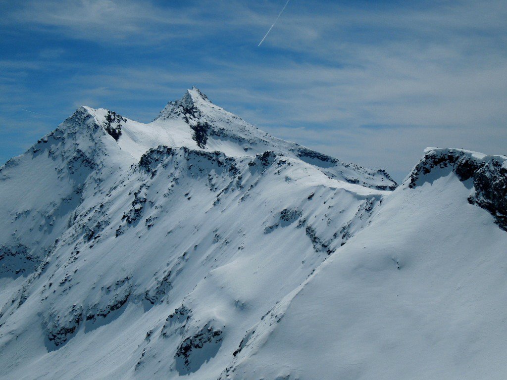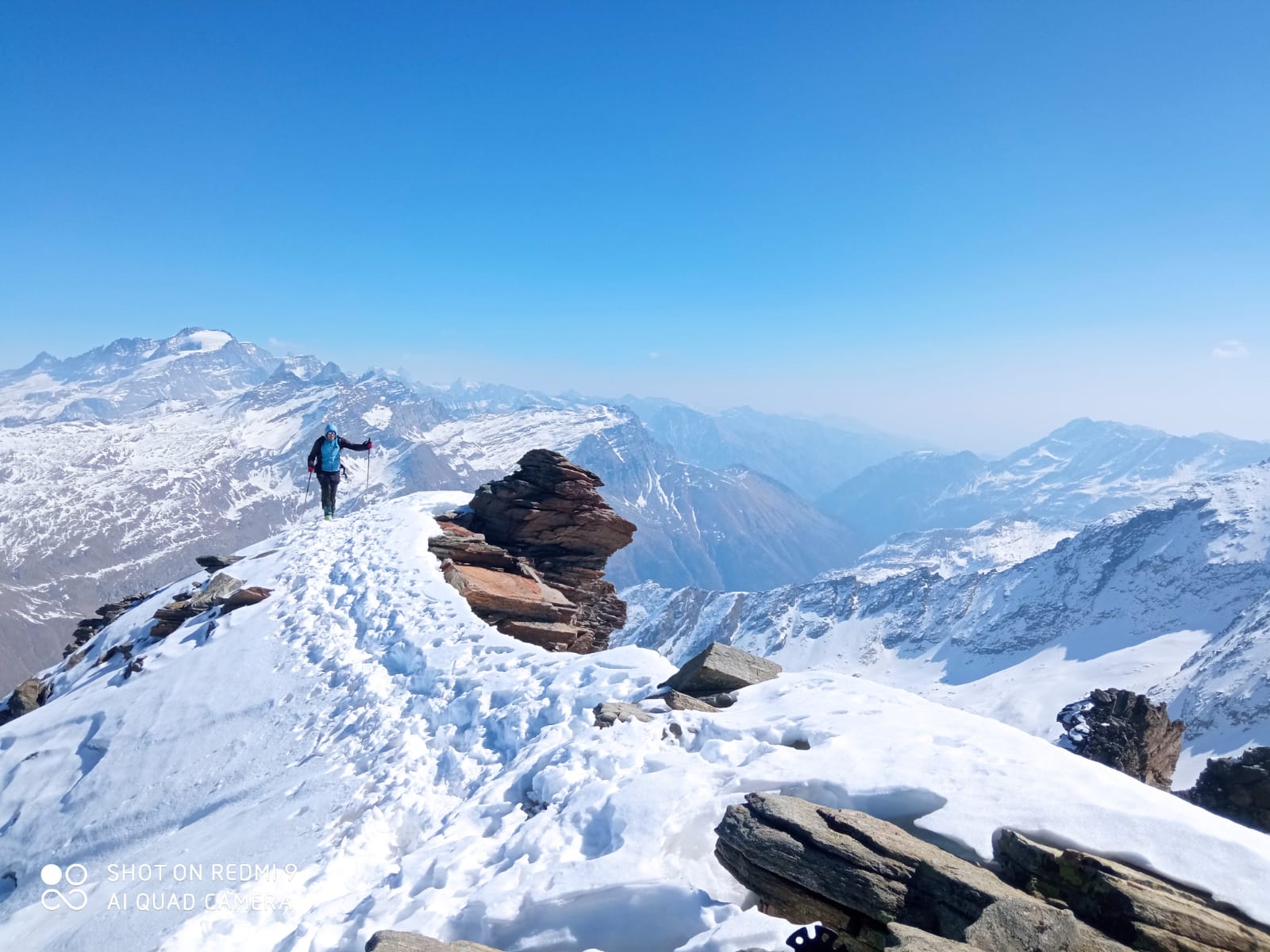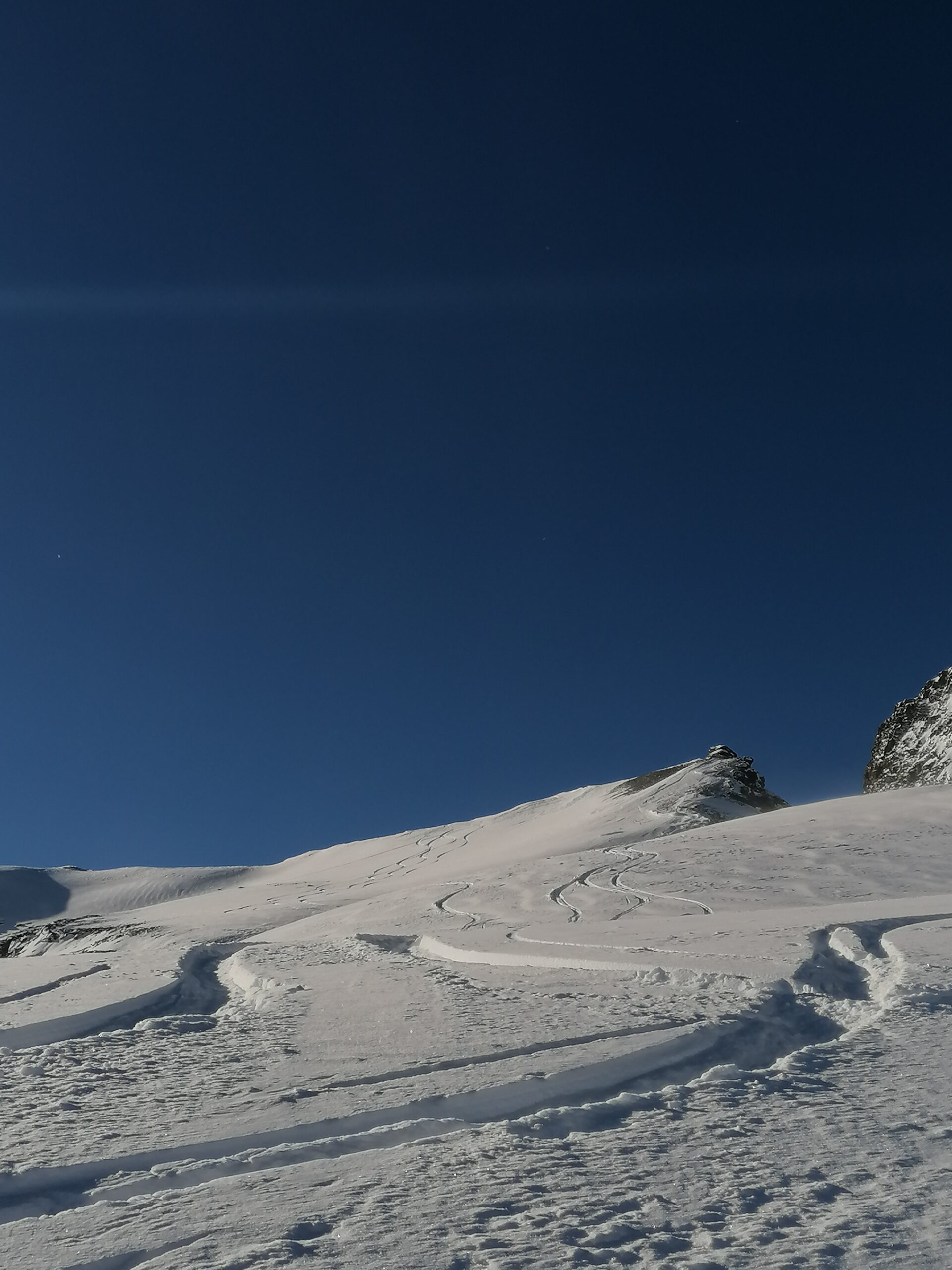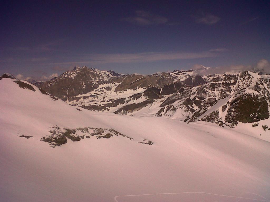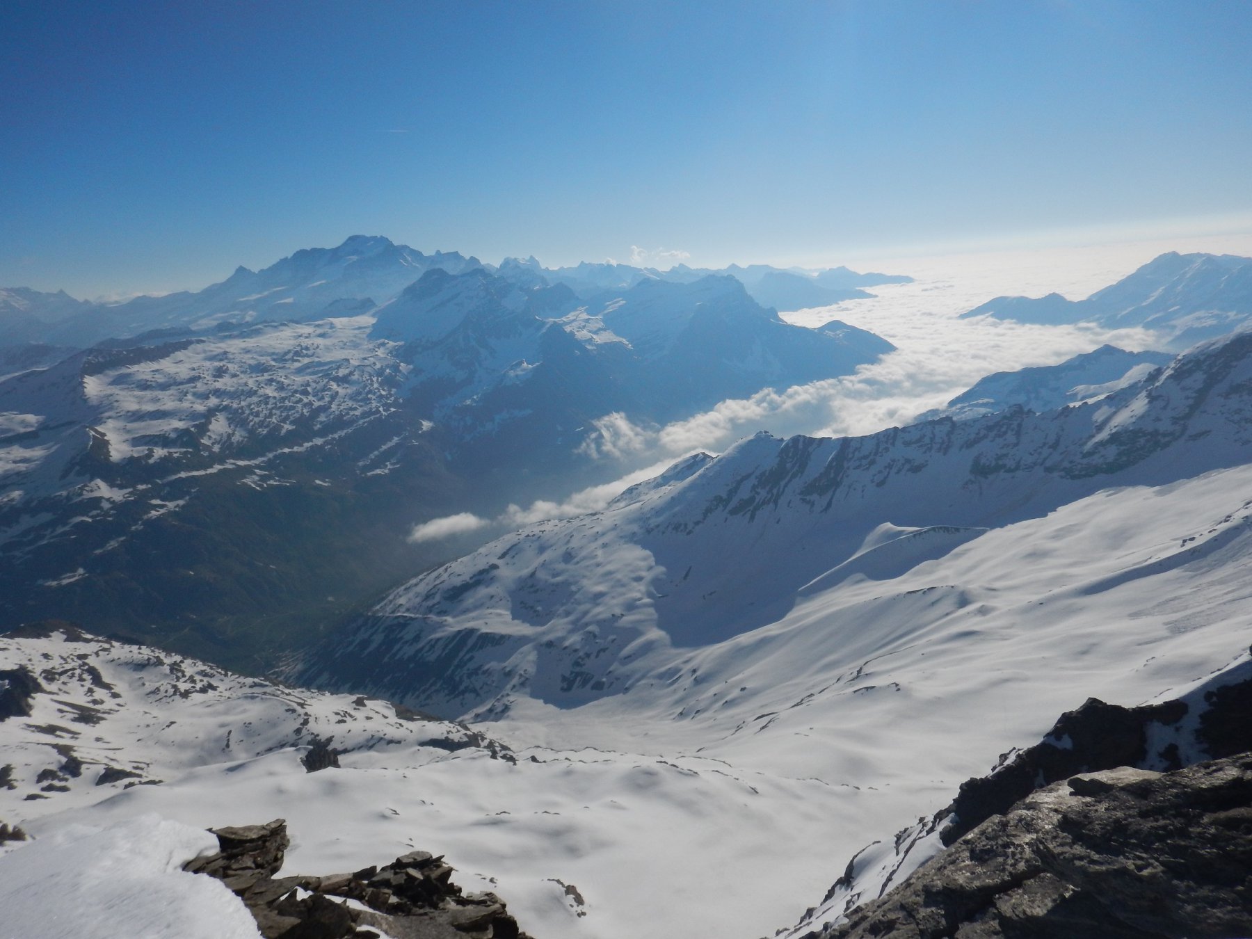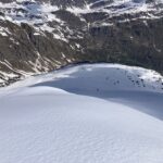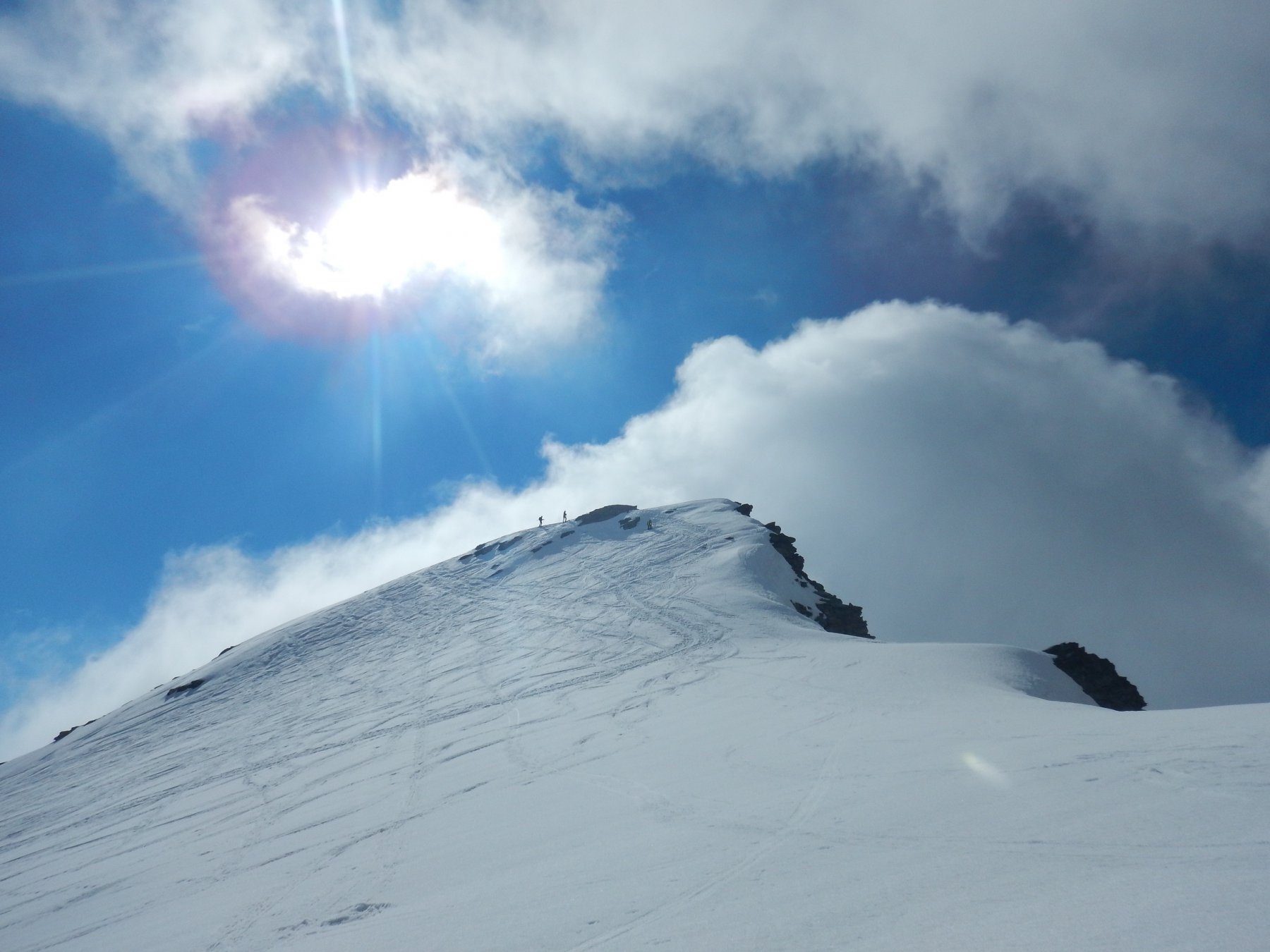Al termine di questa rampa la pendenza diminuisce e si piega a sinistra in direzione della cima che si raggiunge agevolmente, direttamente o per la cresta di frontiera.