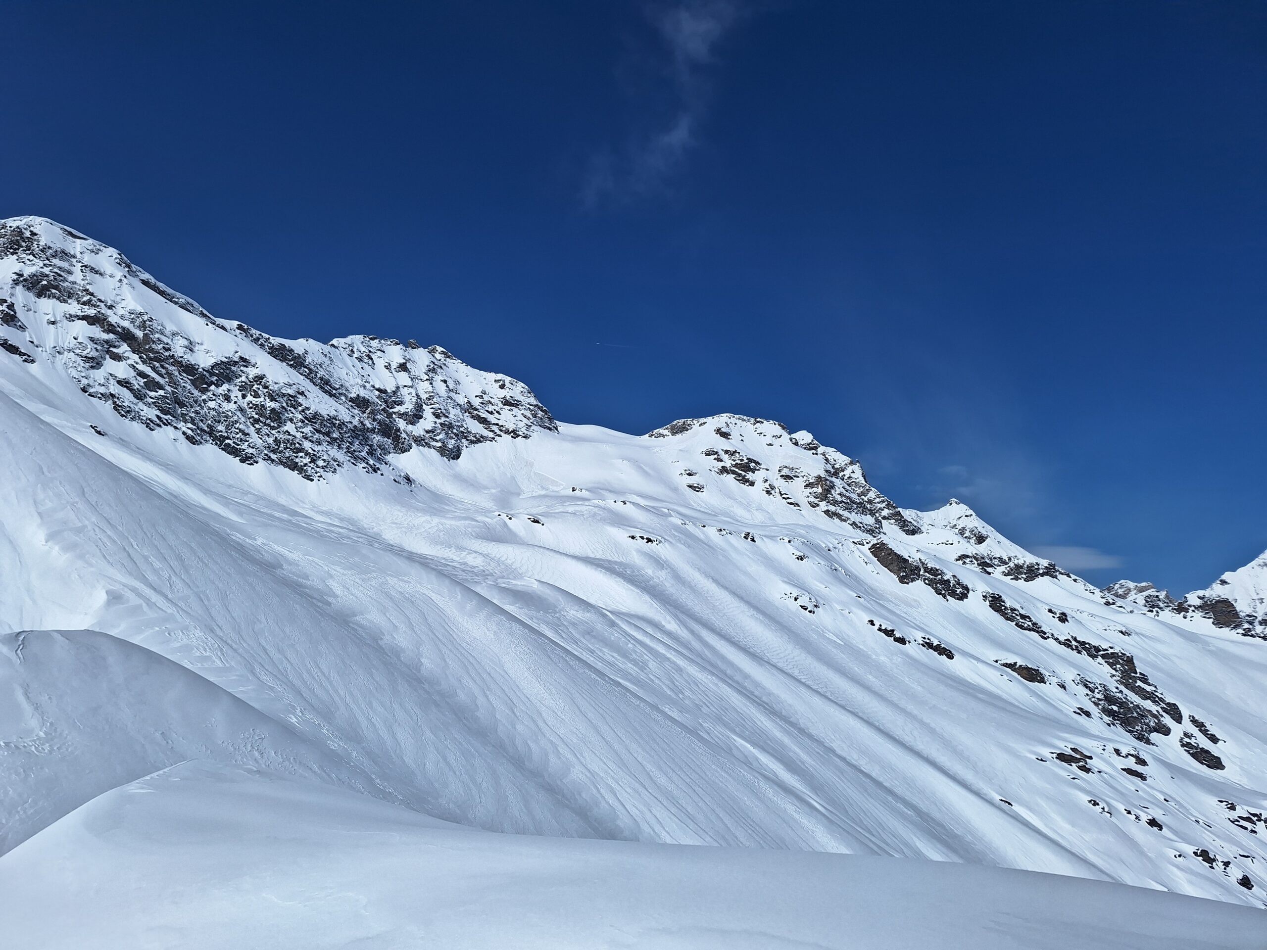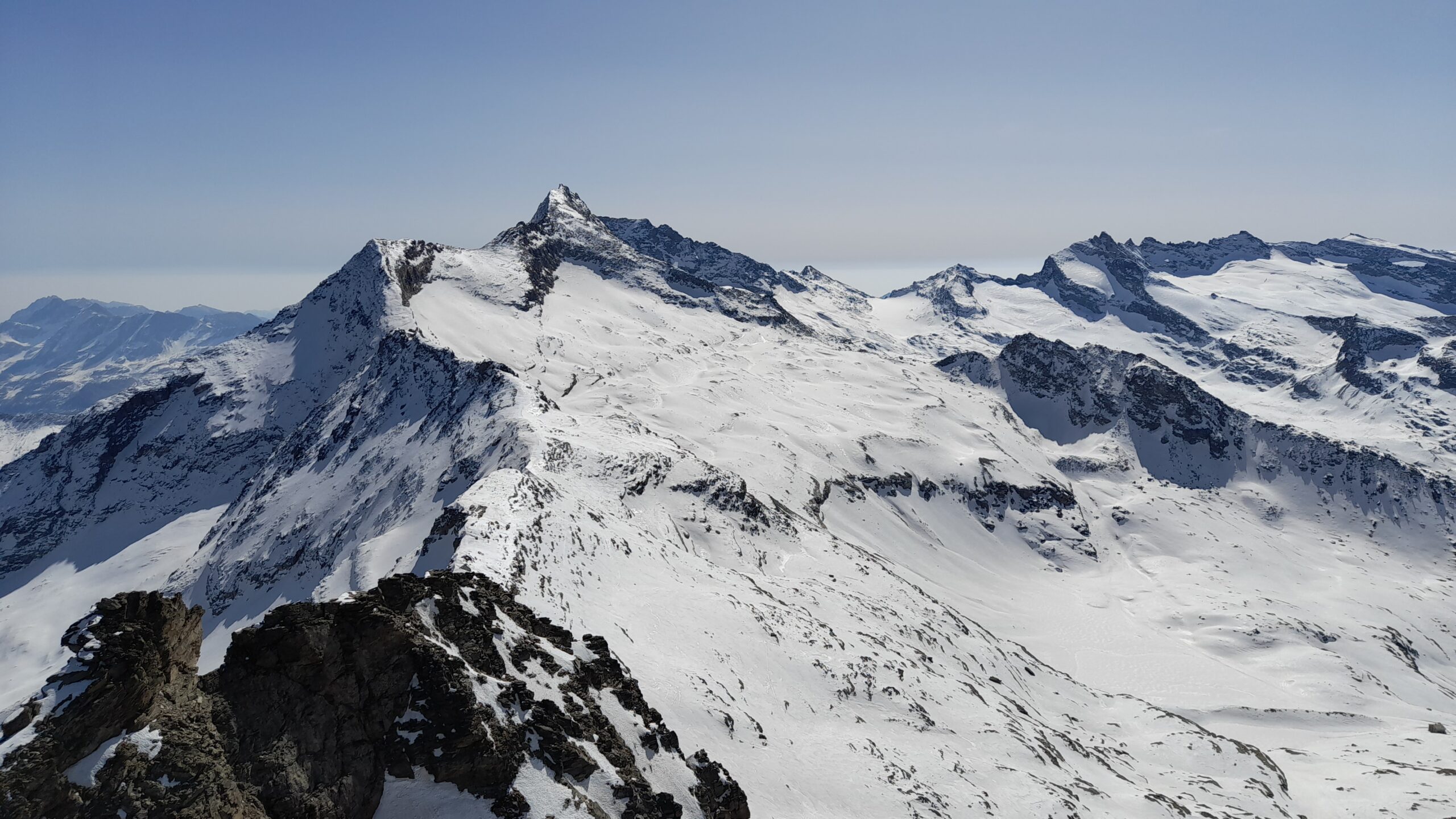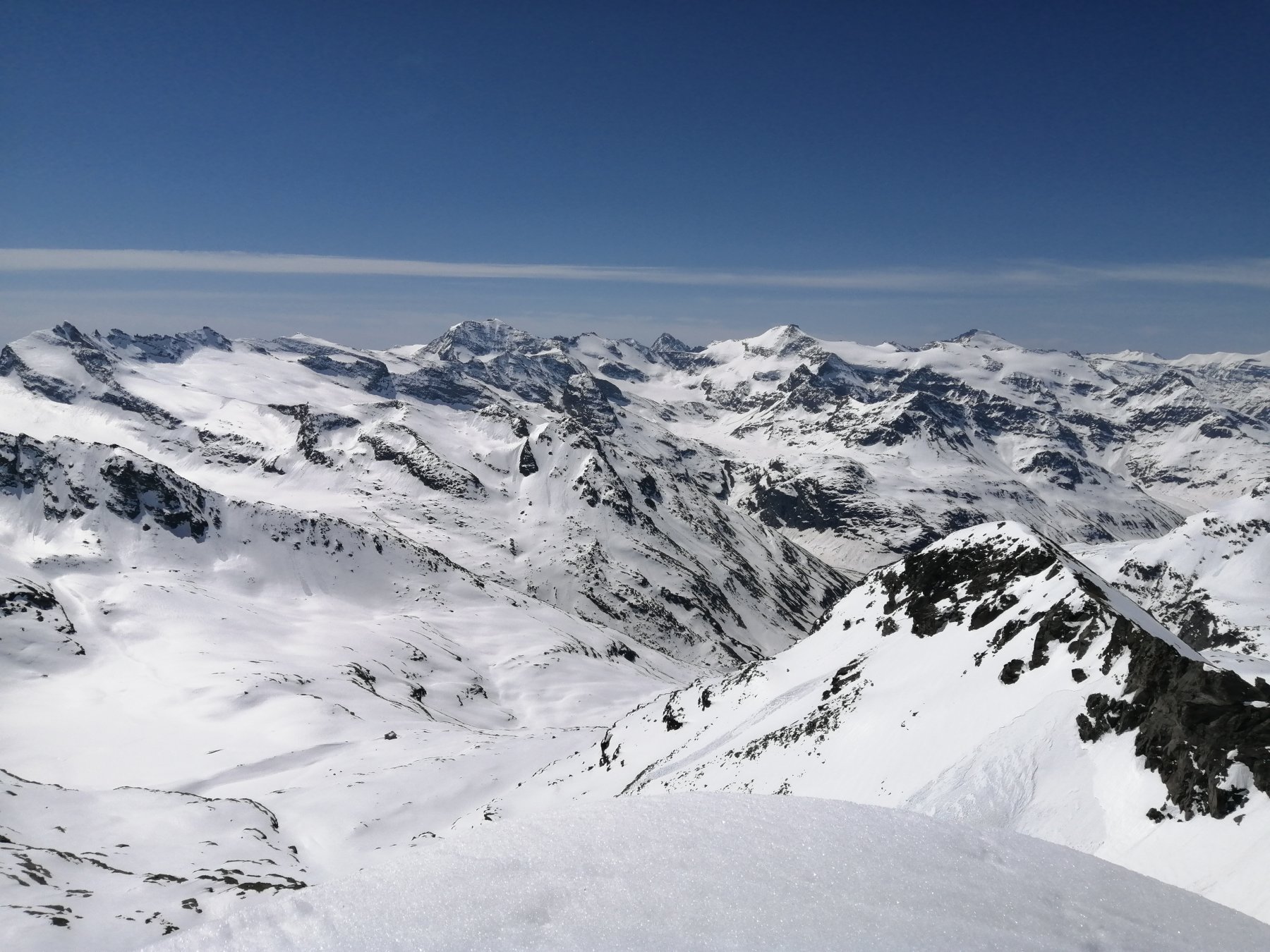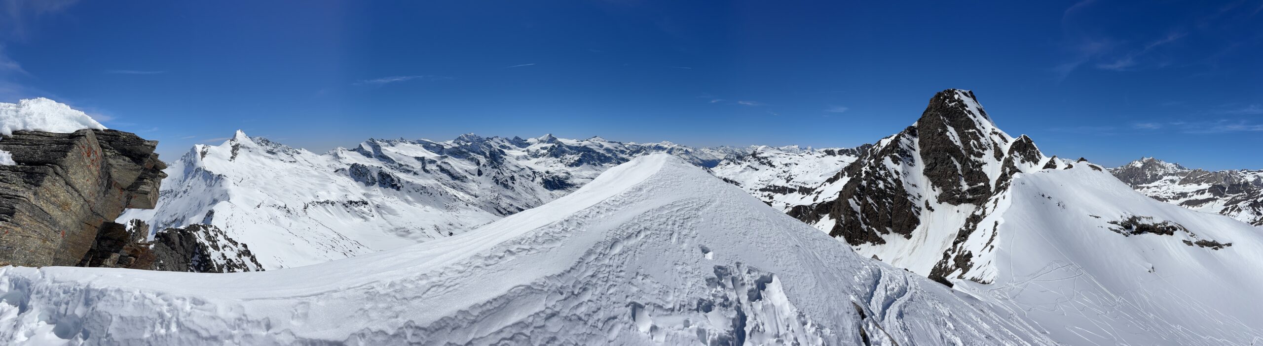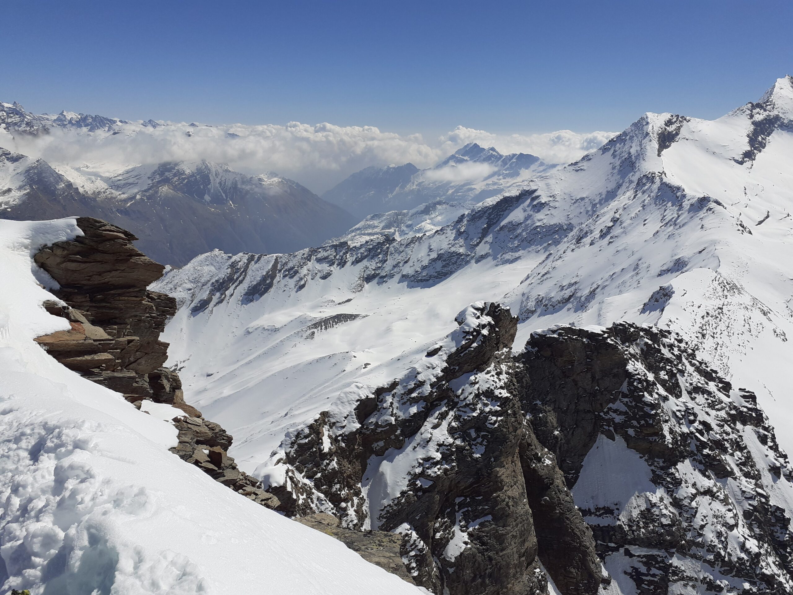 Al termine di questa rampa la pendenza diminuisce e si piega a sinistra in direzione della cima che si raggiunge agevolmente, direttamente o per la cresta di frontiera.