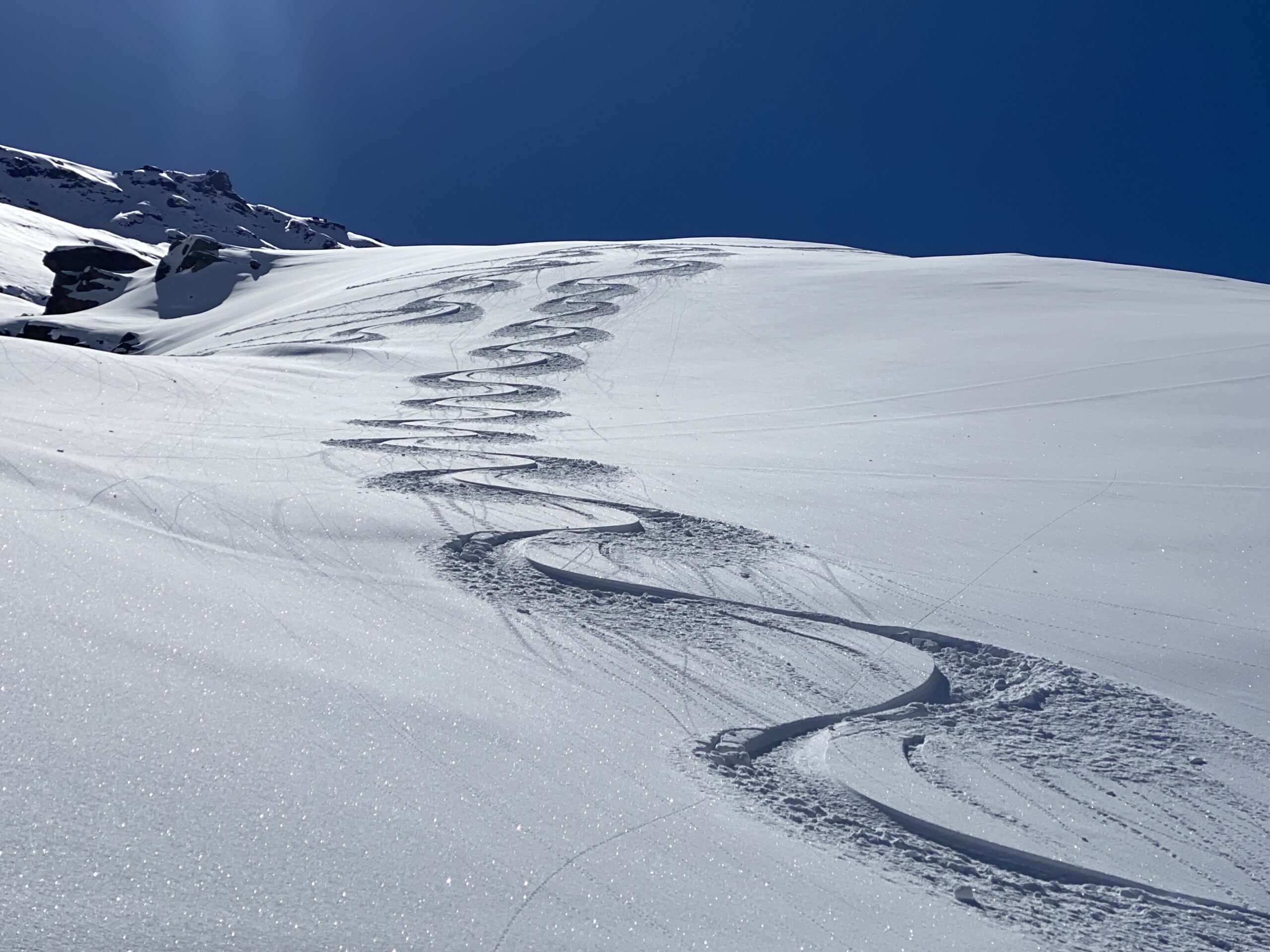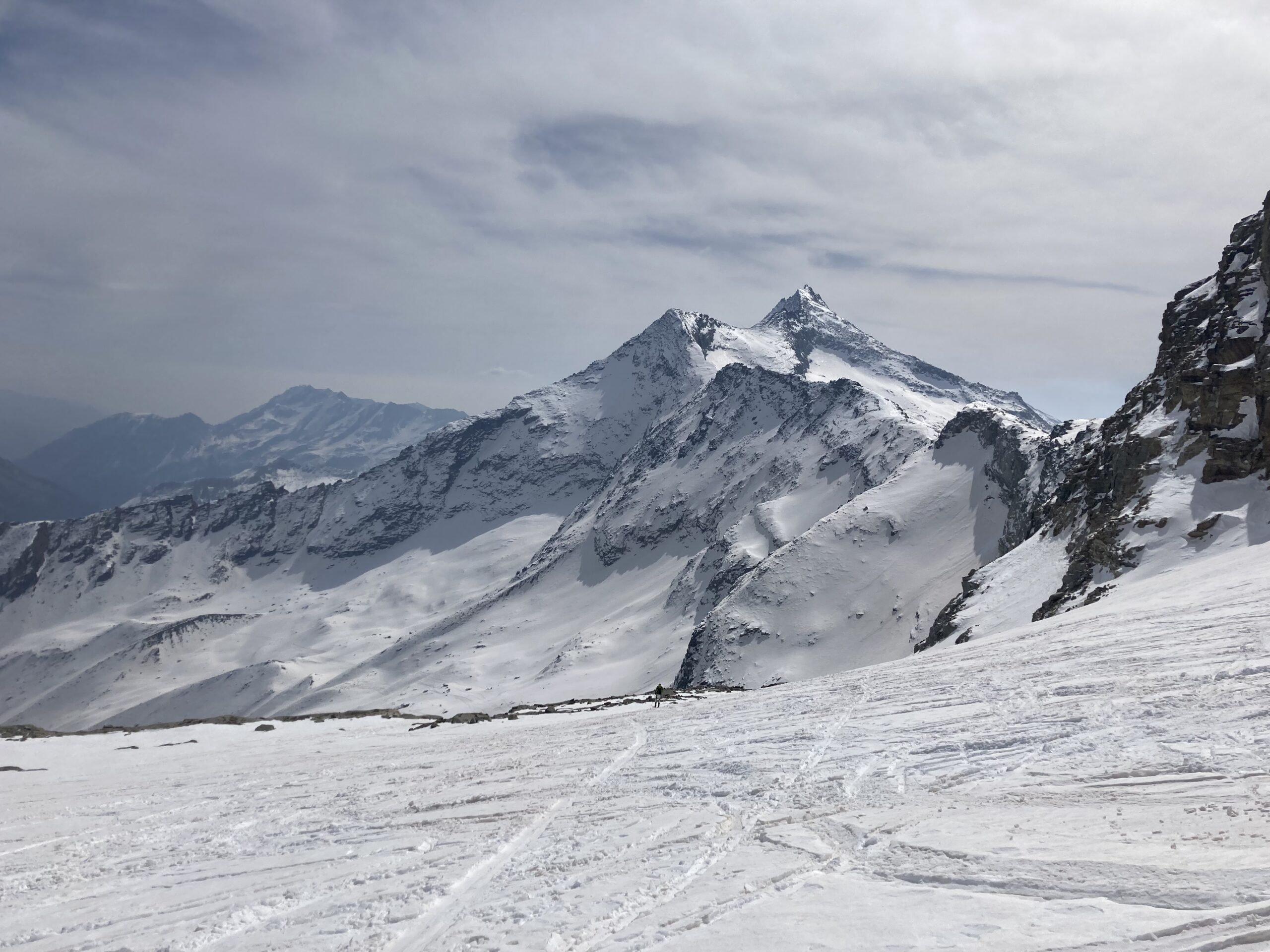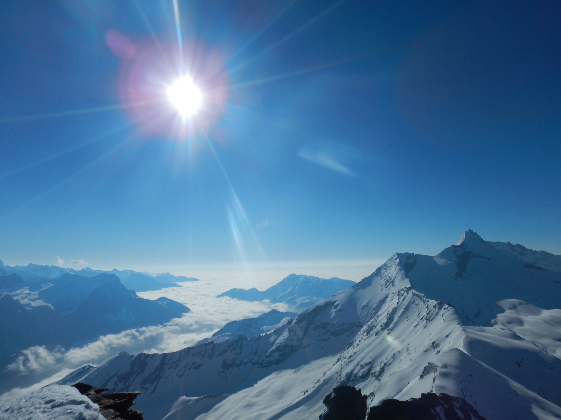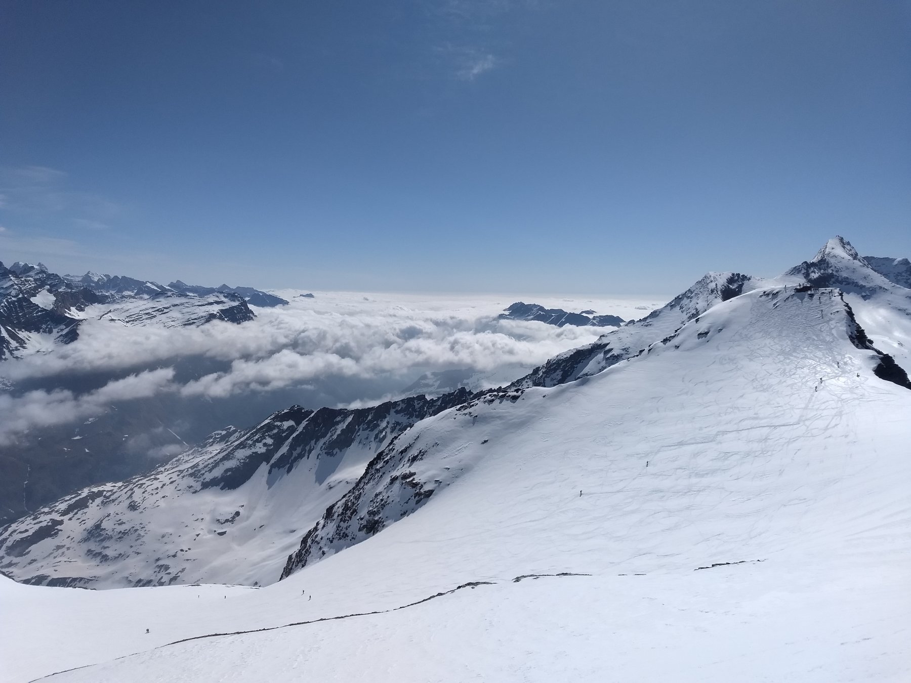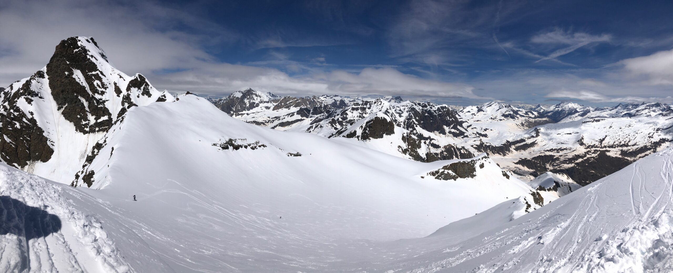 Al termine di questa rampa la pendenza diminuisce e si piega a sinistra in direzione della cima che si raggiunge agevolmente, direttamente o per la cresta di frontiera.