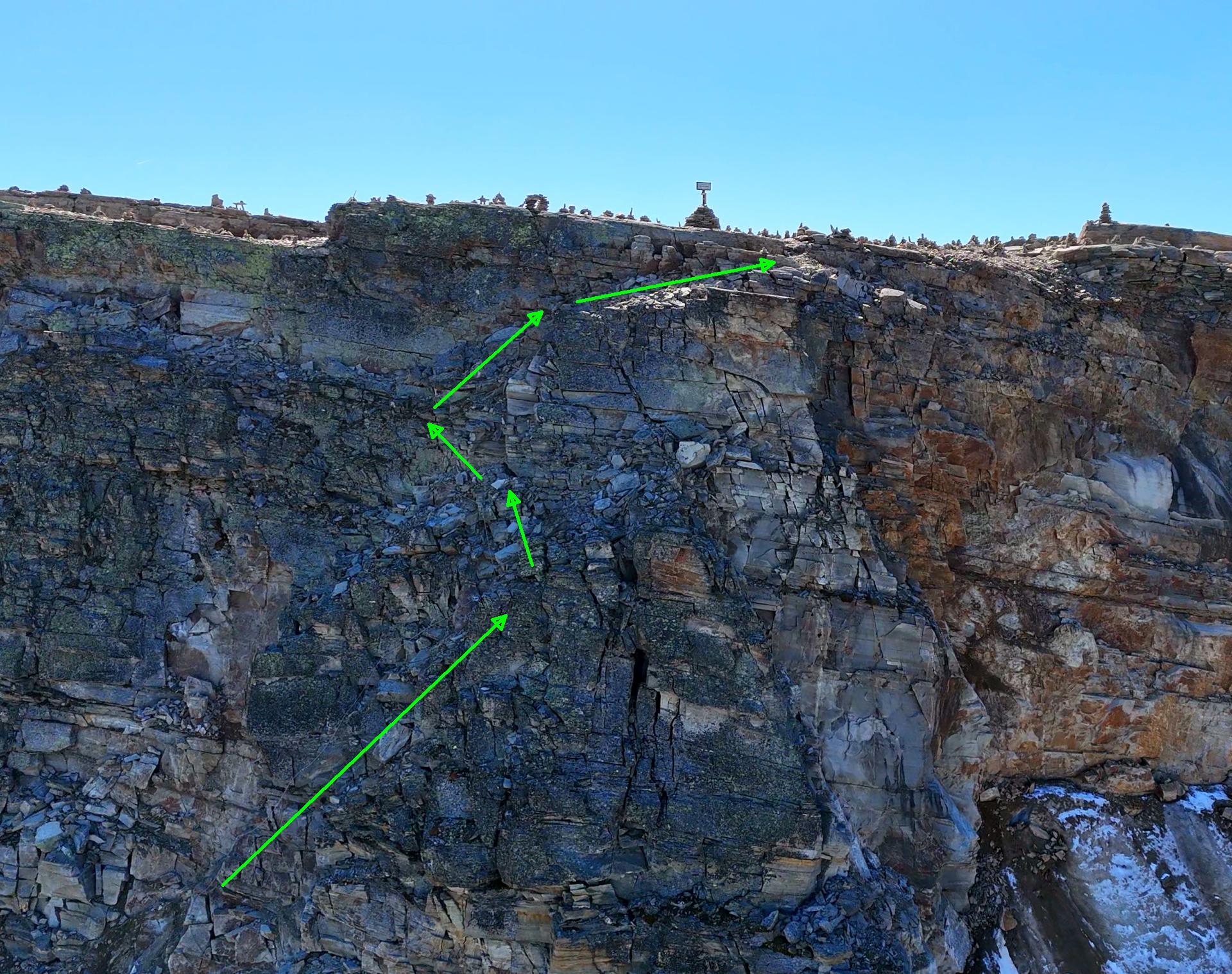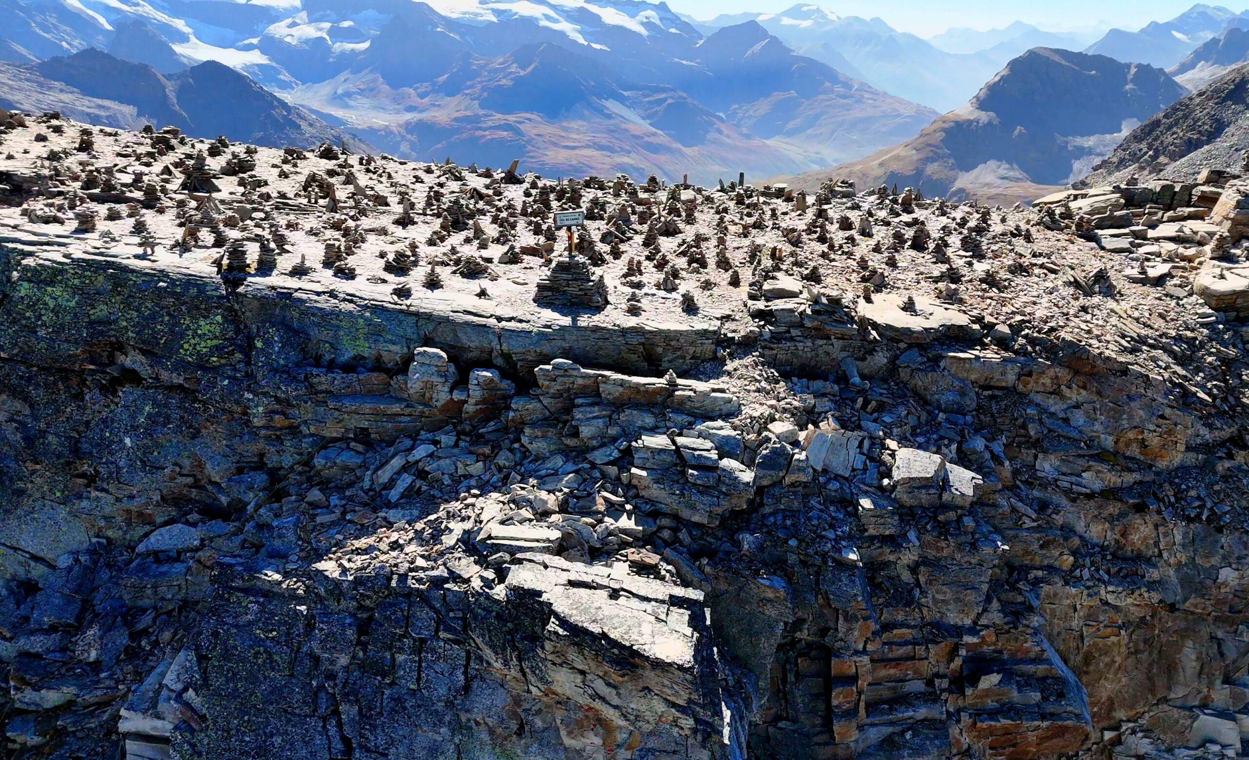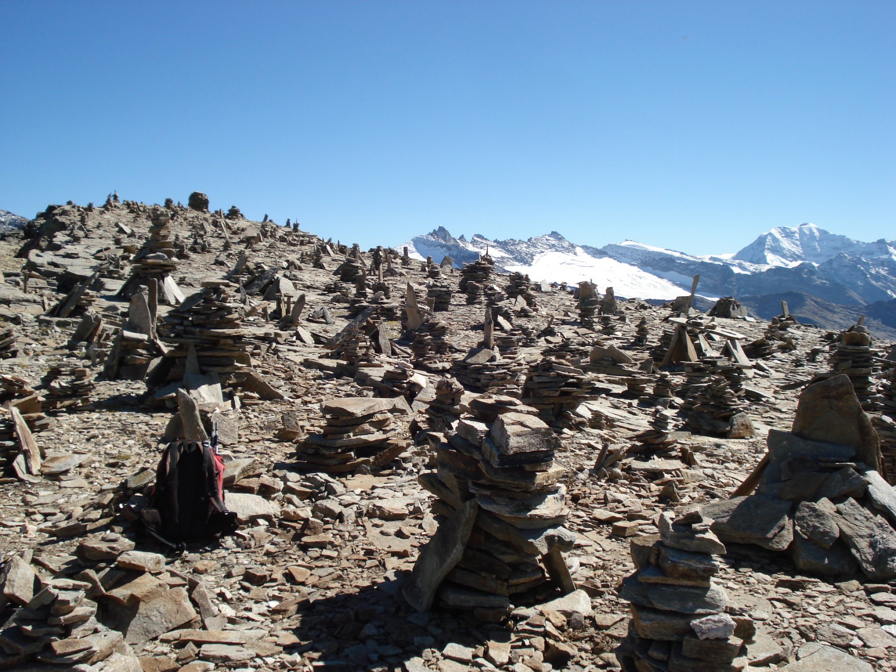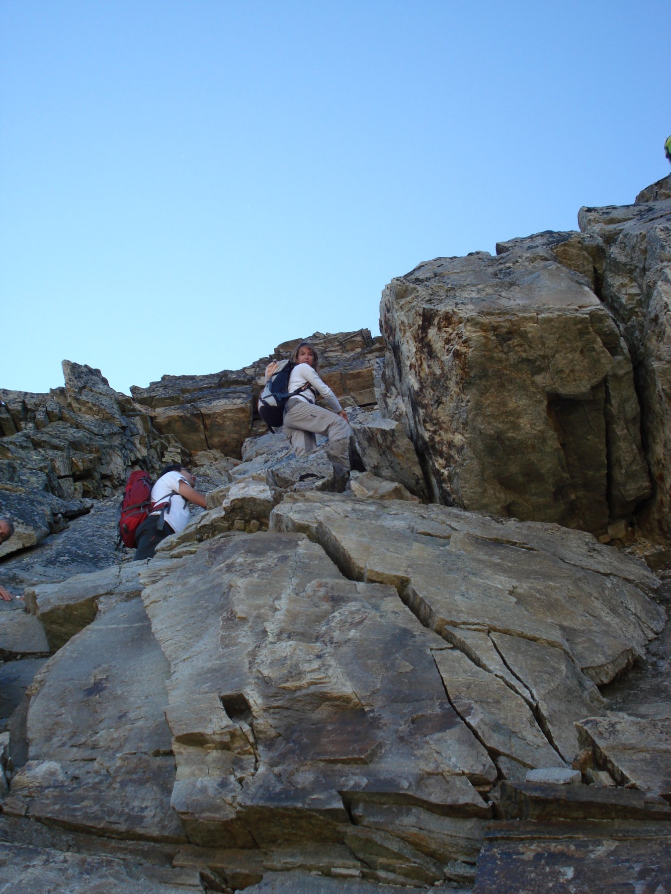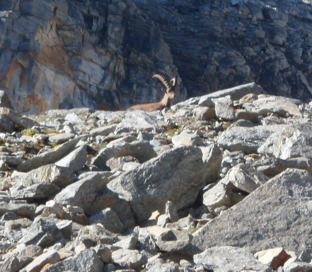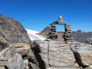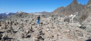 Su sentiero sempre ben segnalato si prosegue fino a passare sotto al ghiacciaio tra la cima d’oin e la quota 3183. Si attraversano alcuni rivoli d’acqua su rocce montonate e poi alcuni nevai e morene che coprono una parte del ghiacciaio occidentale del Carro. Sempre seguendo i segni, si perviene ad un secondo tratto attrezzato che permette di superare una prima balza rocciosa. Il colle del carro è ormai ben visibile e riconoscibile da una evidente palina indicatrice. Su tratti più ripidi si giunge sotto al colle che sembra quasi verticale sopra la nostra testa. Un ultimo tratto attrezzato conduce al colle.