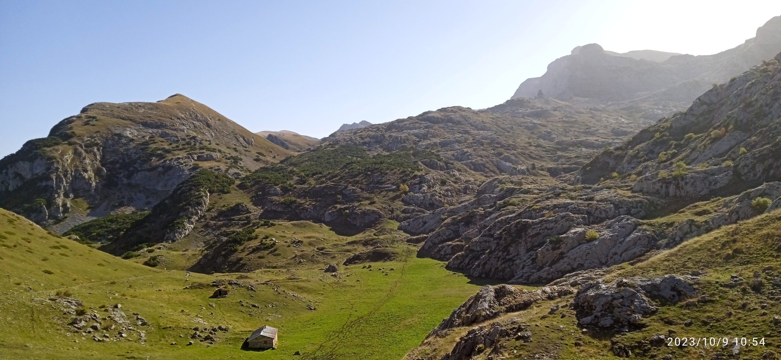 Il percorso inizia a salire più marcatamente nel bosco con sentiero ora un po’ più esile ma sempre ben evidente; terminato il bosco si raggiunge un bel prato sotto le pareti della Cima Bassa del Carbone, dove si incontra il sentiero di destra per il Gias Vaccarile (direzione Punta Mirauda). Si prosegue verso sinistra compiendo uno spettacolare traverso su un’ampia cengia sospesa su una parete a precipizio (attenzione in presenza di neve/ghiaccio), prima di tornare a salire dolcemente un modesto valloncello che in breve conduce al Passo Baban, da dove si apre l’esteso altopiano della conca delle Carsene. Si intercetta poco oltre la Ciclovia del Duca, proveniente dal Passo del Duca e diretta a Capanna Morgantini: la si segue verso destra compiendo un ampio semicerchio sotto le propaggini di Cima della Fascia (è possibile abbreviare attraversando la conca sottostante passando al Gias delle Ortiche) e alternando tratti sulla bella pista ad altri di sentiero per evitare i lunghi giri dei tornanti, si raggiunge la Capanna Speleologica Morgantini 2237 m (rifugio Cai riservato agli speleologi).