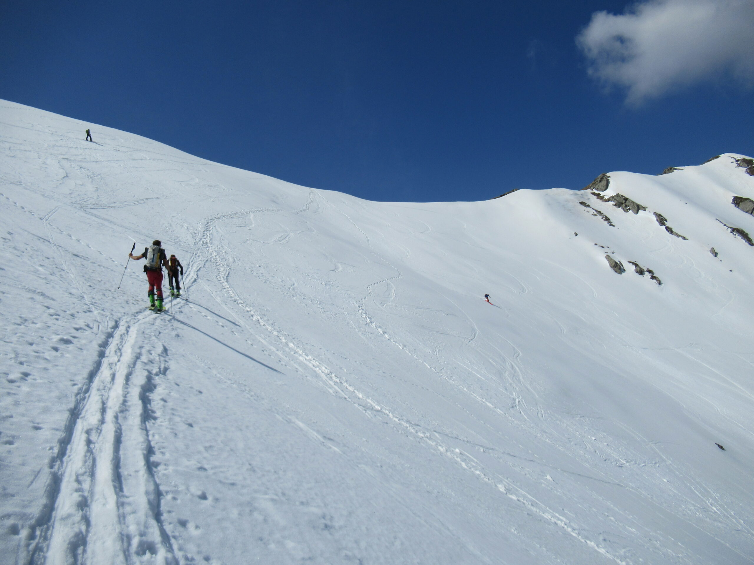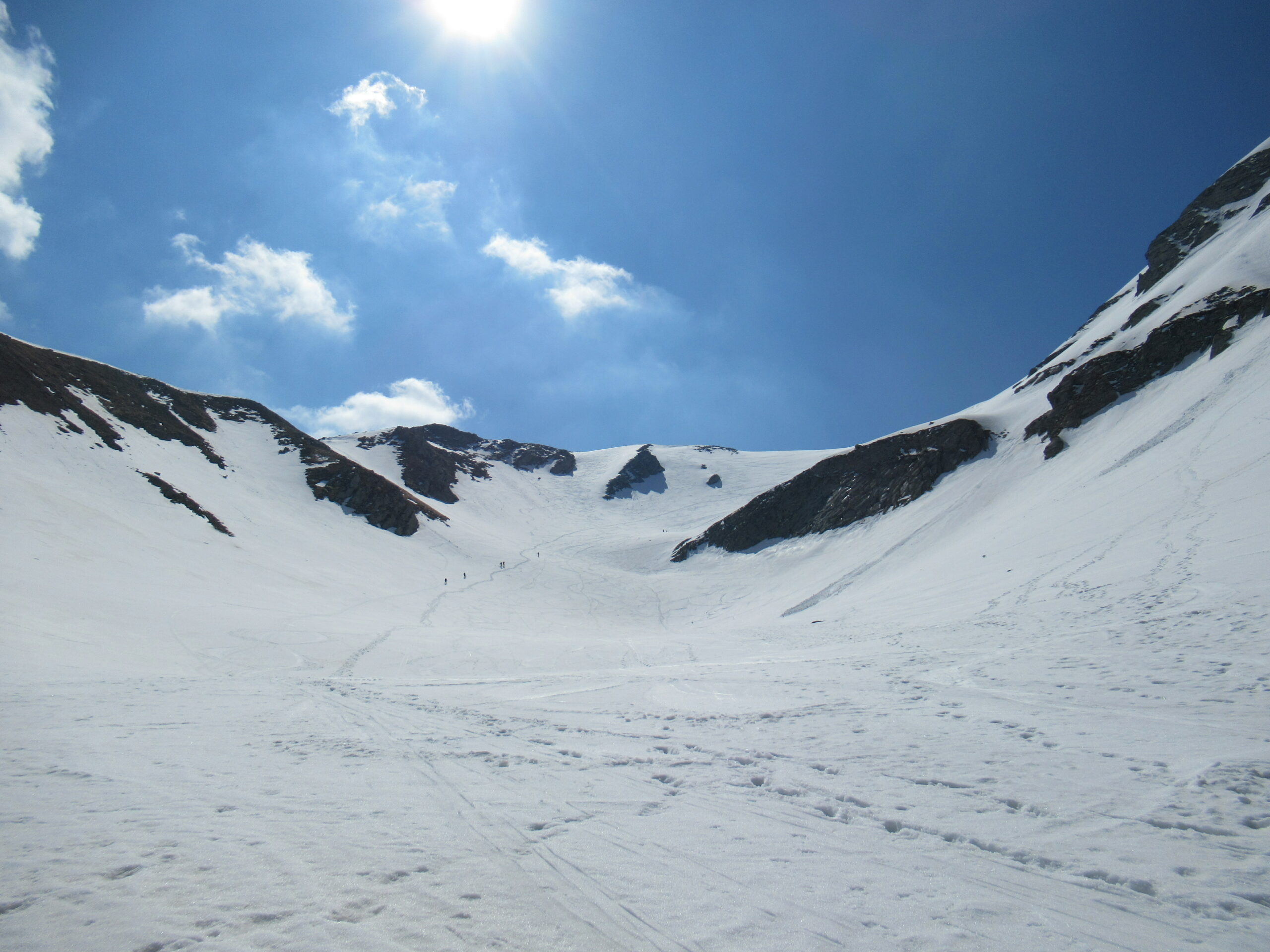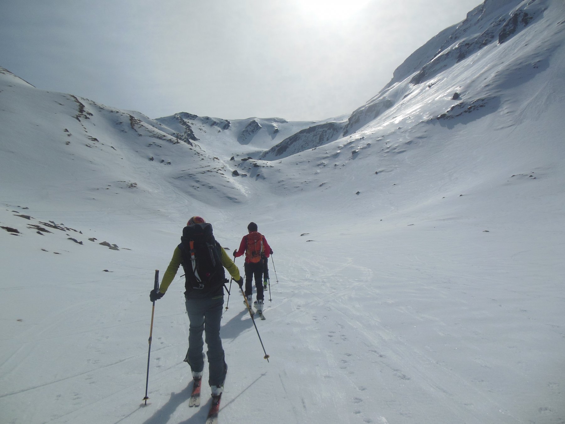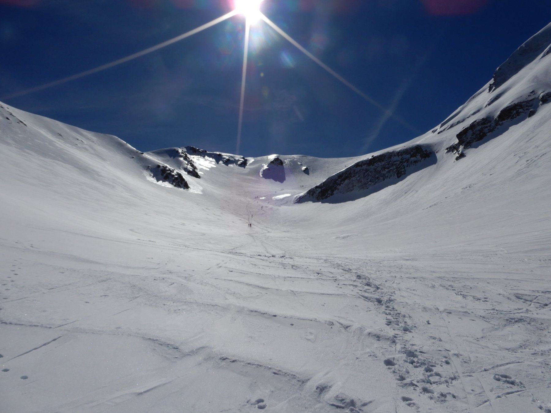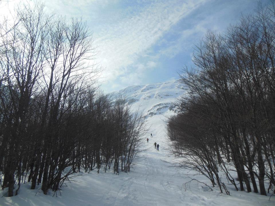 La discesa è molto gratificante perchè percorre uno dei due canaloni che riportano al Rifugio.