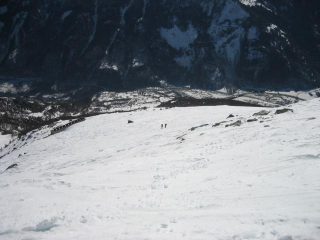 Niente rigelo notturno quindi potete immaginare la neve, era già molle in partenza. A scendere era completamente marcia, appena ho incrociato la strada ho fatto che seguirla… Peccato perchè se la neve gela deve essere una bellissima sciata..!