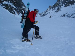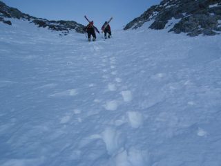 Tutto da tracciare…davvero luungo. accolti da scariche dalle pareti laterali di neve polverosa e nel canale da qualche piccola colata di qualche cm. Usciti sulla calotta in polvere tranne parte centrale in ghiaccio vivo. Condizioni sicure anche sulle pareti laterali del canale che garantiscono neve polverosa evitando alcuni tratti di farina pressata dal vento.