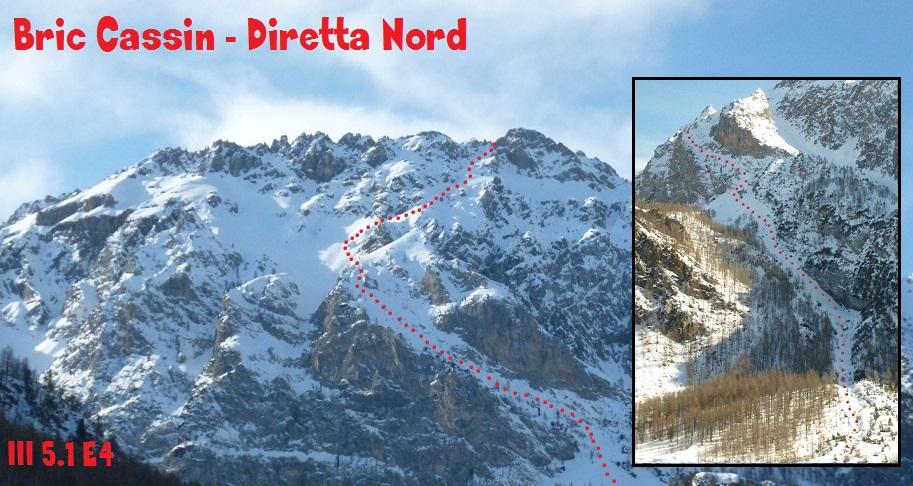 Da Chialvetta si raggiunge Pratorotondo. Si punta ora verso la parete sino a incontrare un’evidente solco causato da un effimero rio (primaverile-estivo). Lo si segue sino a raggiungere una rampa (1800m circa). Si salgono i primi 200m (30° circa) e raggiunto il pendio sovrastante si continua a salire “diagonalando” progressivamente a sx, cercando la linea più innevata. In questo tratto, roccioso e ripido (45°-50°), può anche affiorare neve ghiacciata o essere pelato. Si percorre ora la cengia per poi salire verso dx raggiungendo, dopo un breve traverso, l’uscita del canale classico NO ( 2350m circa). Si procede ora in piena parete per una cinquantina di metri e si sale decisamente a destra raggiungendo il pendio sospeso. Si esce in cresta su un comodo balcone al sole ( 2615m circa)