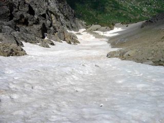 il canale è molto bello: non slavinato e con innevamento continuo, tranne 30 metri tra i due tronconi).