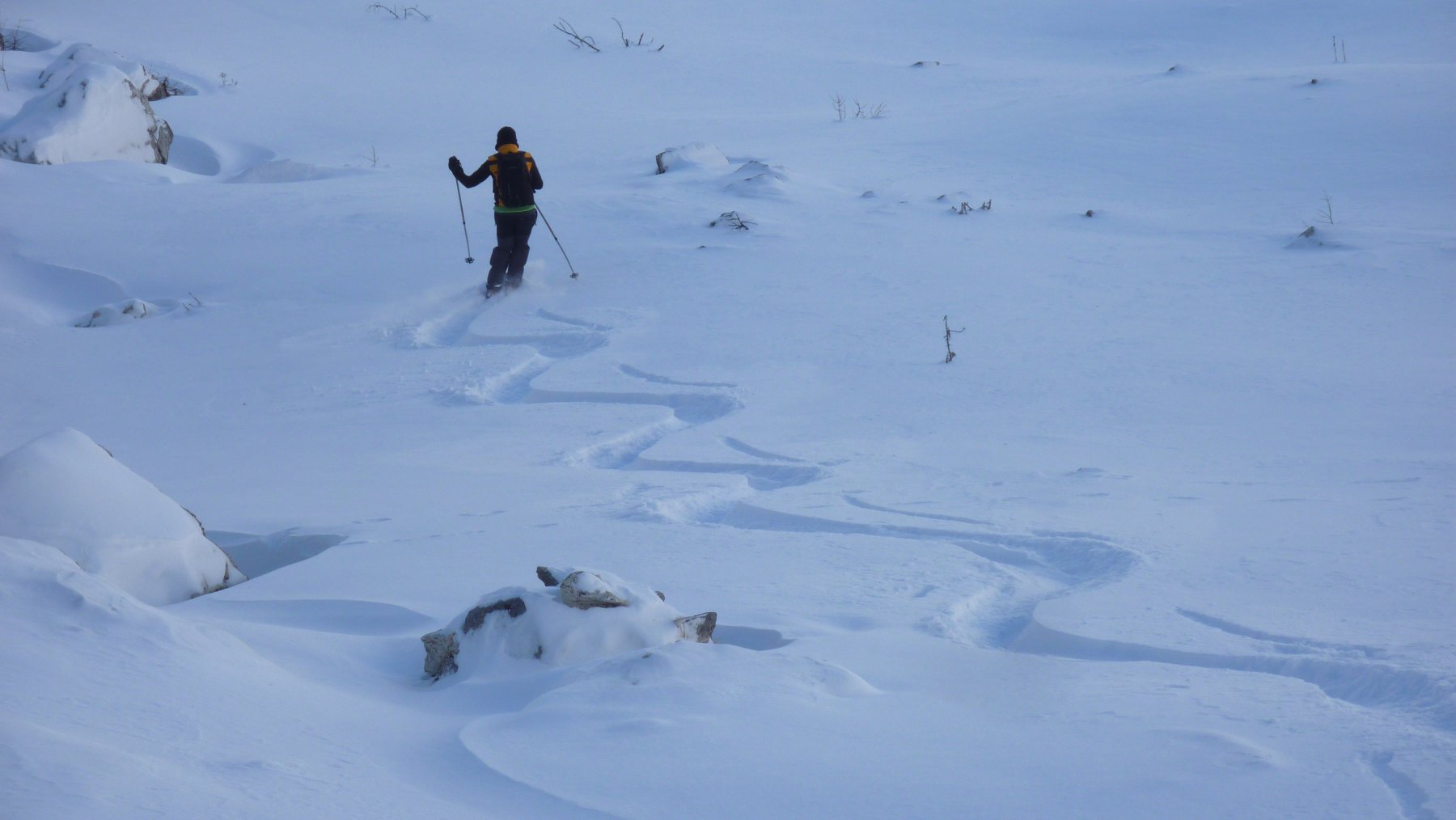 scesi su bellissima farina, purtroppo manca un po’ di fondo e spesso si toccano pietre, ma se non sia troppa paura di raschiare un po’ la sciata è stupenda. nell’ultimo pezzo prima di prato ciorliero si trova anche un po’ di fondo ghiacciato. poi stradina ben innevata. dopo viviere si tocca talvolta qualche pezzo di asfalto ma comunque ben sciabile.