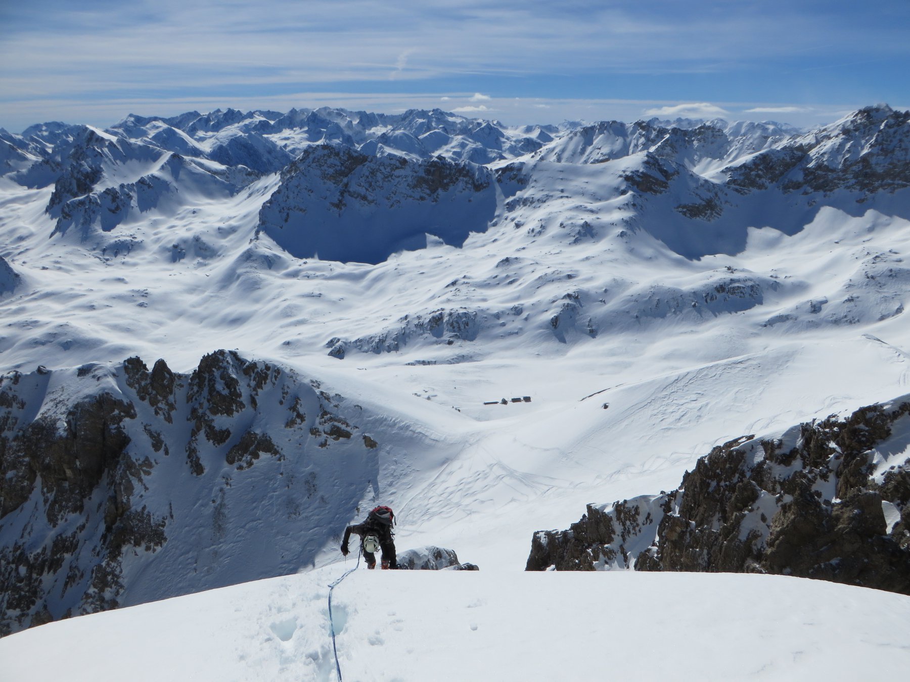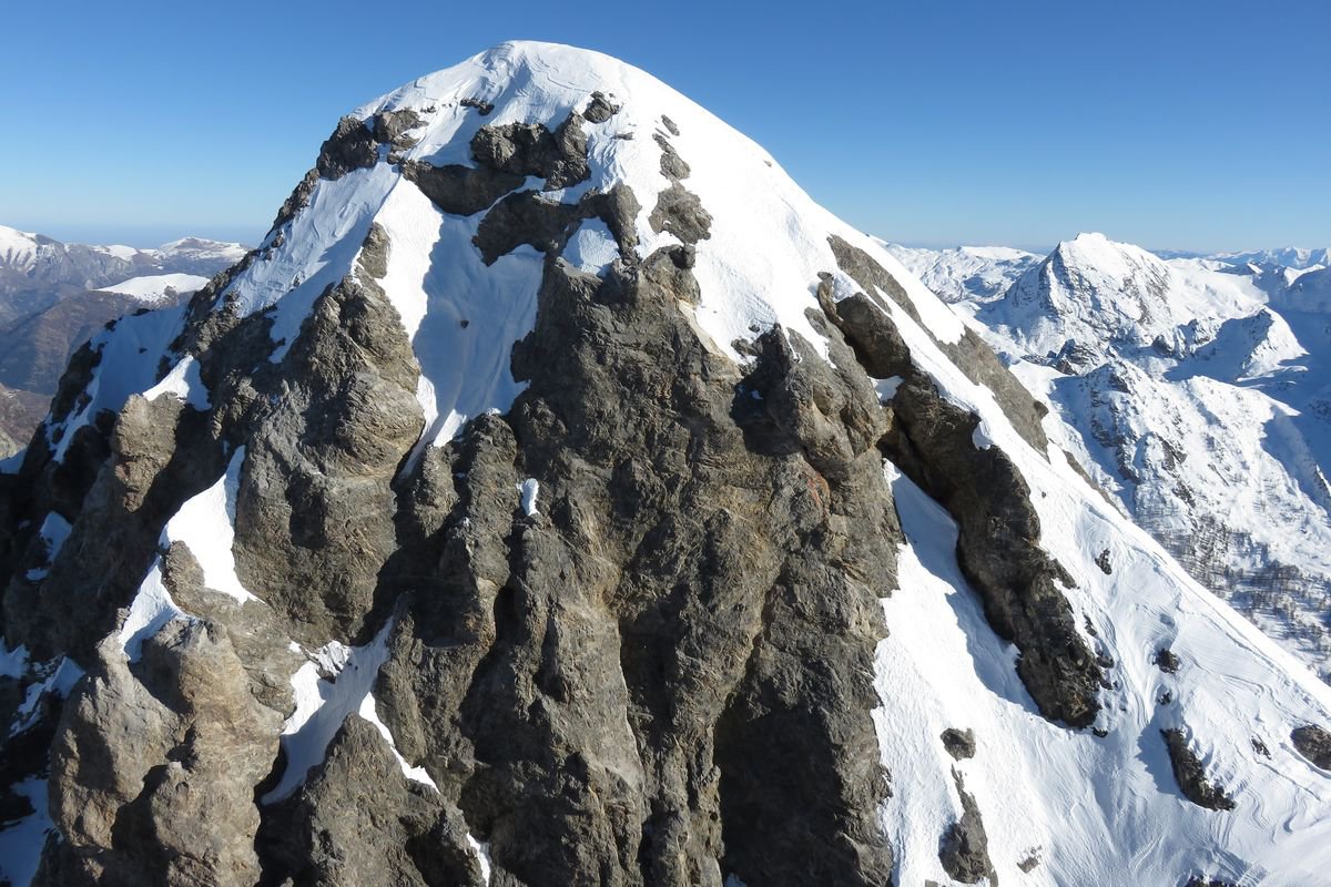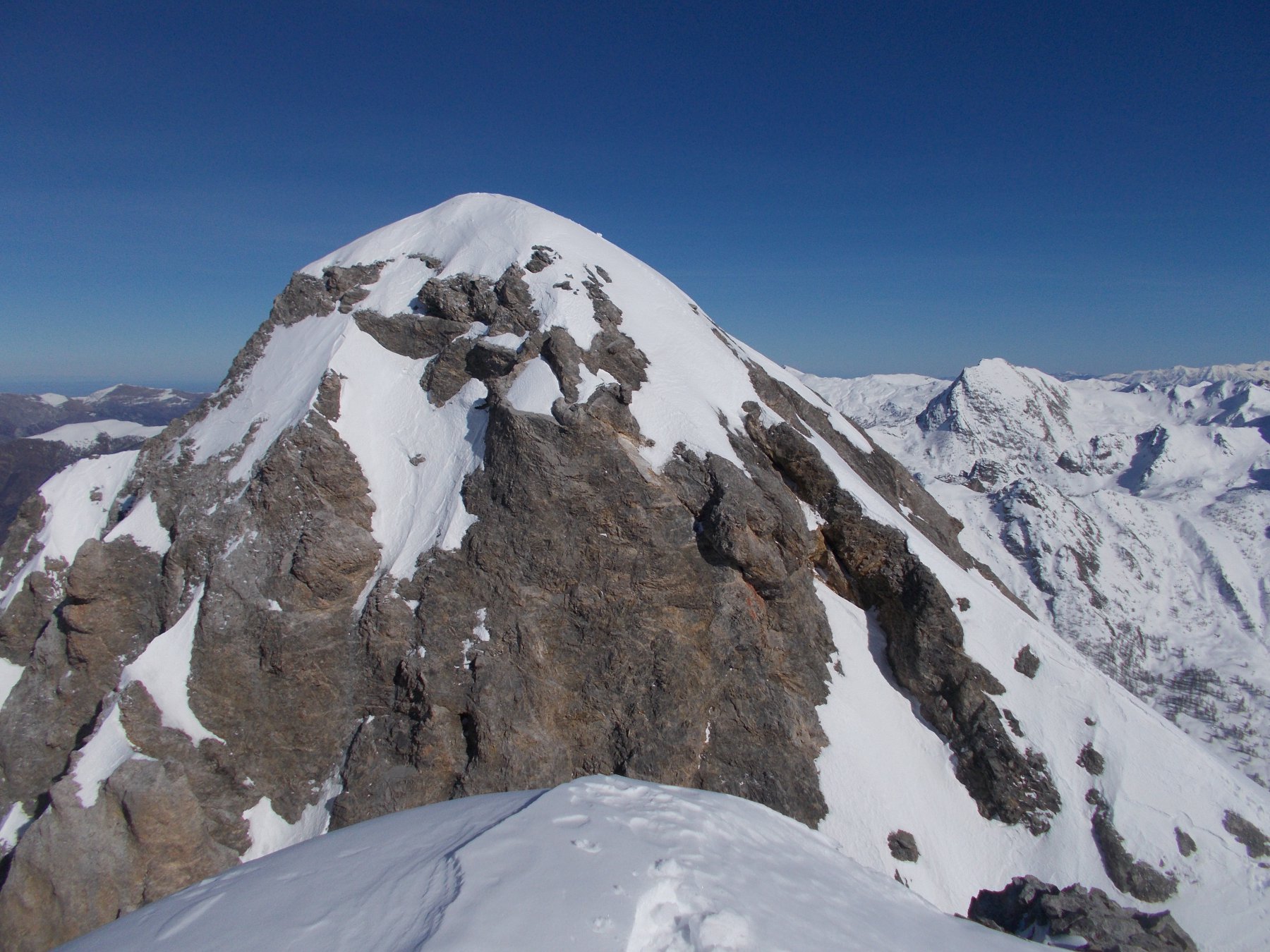 Seguire ora l’ampia cresta, ripida ma senza ulteriori difficoltà, fino alla vetta (40/50 m, 45°).