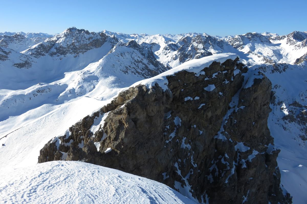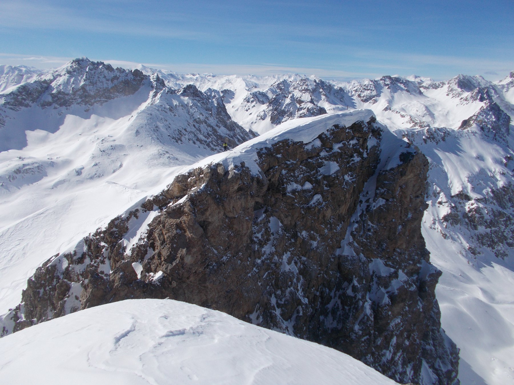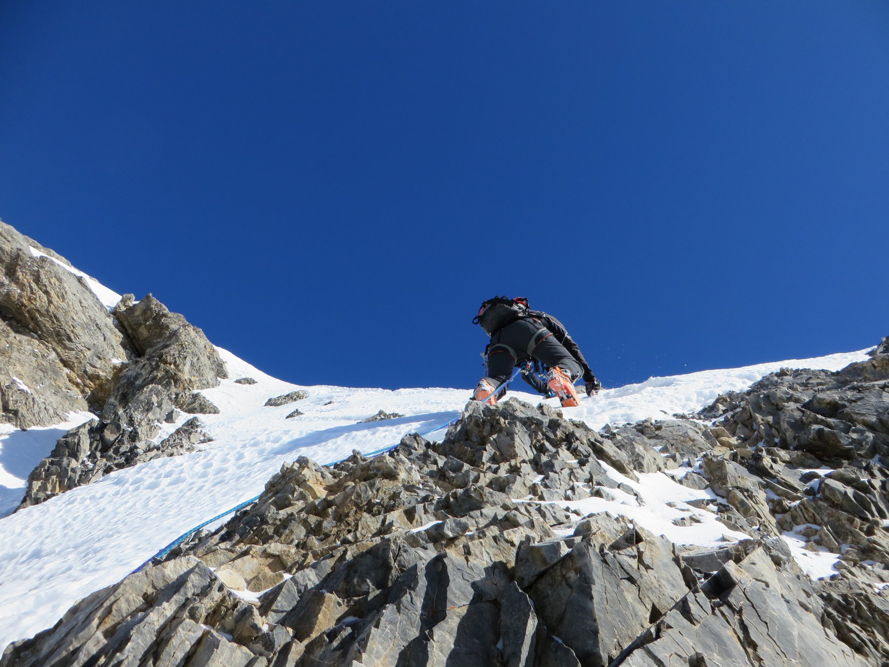 Seguire ora l’ampia cresta, ripida ma senza ulteriori difficoltà, fino alla vetta (40/50 m, 45°).