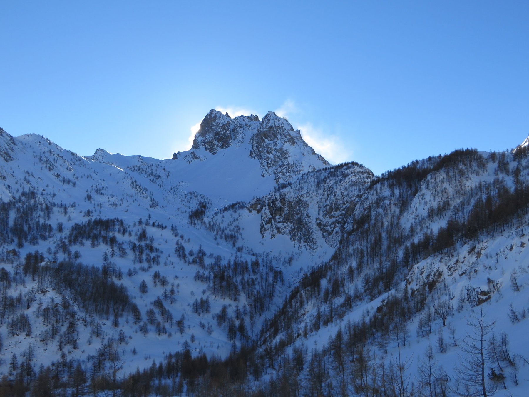 Qui si descrive una via di salita alla cima Est, in condizioni invernali per neve.