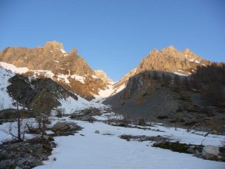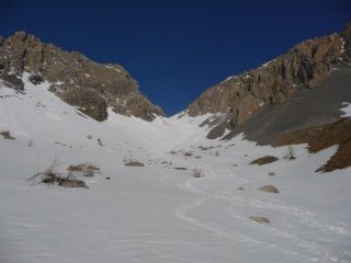In auto fino all’attacco del canale. Si parte sci ai piedi, poi all’inizio del canale, si tolgono gli sci per 20 metri lineari. In basso c’è poca neve (occhio alle solette a scendere!). Salendo la neve aumenta e grazie al rigelo notturno, noi l’abbiamo trovata ottima. Saliti senza coltelli fino in cima. Qualche nuvola ha oscurato il sole ma la discesa è stata da urlo su ottima neve trasformata. Mitico pranzo da una baita vicino all’auto sotto un bivacco di fortuna, visto che iniziava a nevicare… ma che bivacco! e che pranzo!…. complimenti e saluti ai buzzi di giornata, che oggi scalpitavano sia in salita che in discesa! I buzzi di giornata erano: Babybuzzu, Sergio, Beppe, Elide, Giampaolo e Barbara e la cagnetta Ariel.