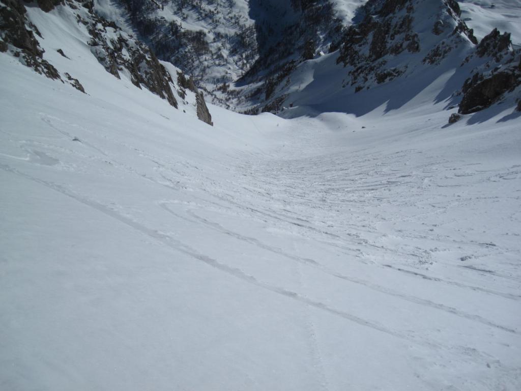 Ore 8 sci ai piedi, giornata con temperatura piacevole e assenza di vento (eccetto in cima al canale). La cresta per arrivare in vetta è stata spazzata dal vento e la neve rimasta era molto dura. Qualcuno prima di me ha tolto gli sci ed è salito a piedi. Io mi sono fermato poco prima della vetta per il forte vento e per la neve che non valeva la pena.