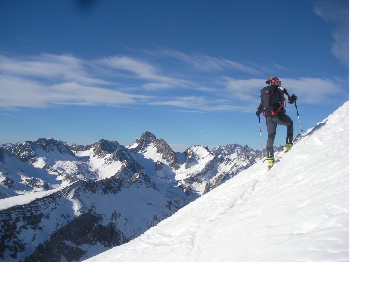 Gita in ambiente a dir poco da favola. Pendii costantemente ripidi, neve dai connotati gia’ primaverili. Nel canale disceso forse gia’ un po tardi, lunghi tratti erano gia’ con neve dura, spiacevole da sentire sotto le solette. Non sono mancati cmq altrettanti tratti abbastanza lunghi, dove il sole assentatosi da poco, la neve non aveva subito ancora il processo di indurimento, consentendo cosi di scendere con soddisfazione e in sicurezza. All’ombra della Meja, in una giornata dove tutte le altre condizioni, bella neve inclusa, piu’ meteo spaziale con temperature (al sole) di stampo primaverile, hanno soddisfatto appieno le nostre aspettative. Con Davide anche oggi a dare sfoggio al meglio della sua tecnica sopraffina, e Wainer moooo..lto piu’ tranquillo!