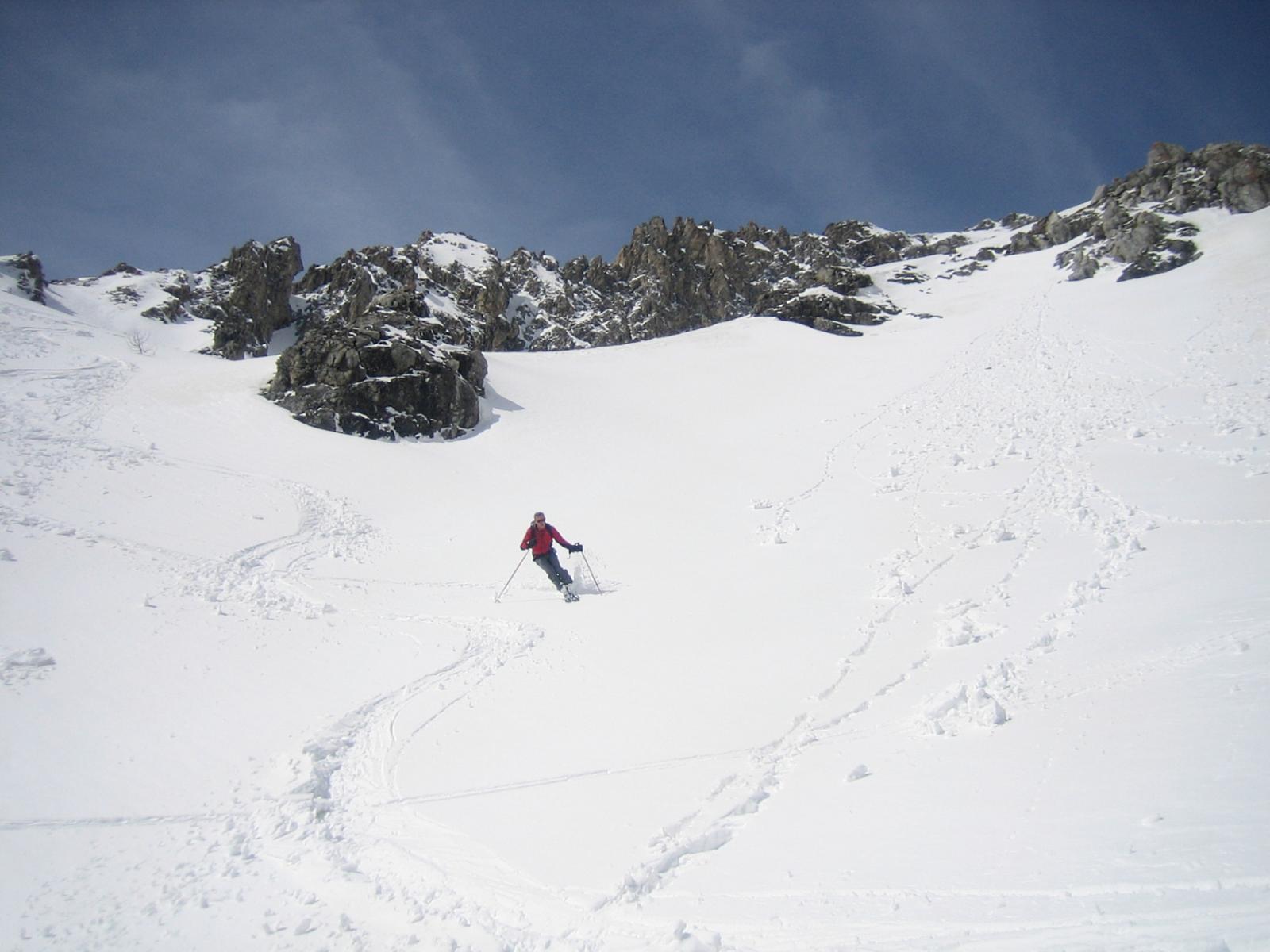 itinerario che si sviluppa nel bellissimo canalone est del Monte Cassorso, sostenuto e regolare; cima molto panoramica; neve umida: ben sciabile nella parte medio alta e un pò meno nella parte finale del canalone;