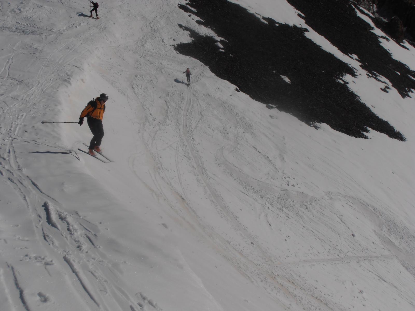 che dire dopo aver passato il 25 con la febbre!!, stamane omar mi è passato a prendere a casa alle 5 uao!ed alle 7 dopo aver preso un caffe al volo in quel di canosio (locanda con gestrice un po fumata),siam arrivati in auto praticamente all’inbocco del canale vero e proprio, già 2 auto presenti,e via direi abbastanza veloci 2 ore circa in cima , salendo incontrato enzo e daniela che saluto,discreta pausa in un tepore quasi estivo, zero aria e panorami a 360°,poi giù in una rilassante e divertente discesa , distrigandosi tra la (folla 50 persone )ore 10 all’auto e poi buona sosta panino birra a canosio sulla piazza( alimentari,bar)alle 13,00 a casa altra giornata da vivere a pieno . saluti al socio omar in gran forma.(ps affrettatevi il canal asciuga)