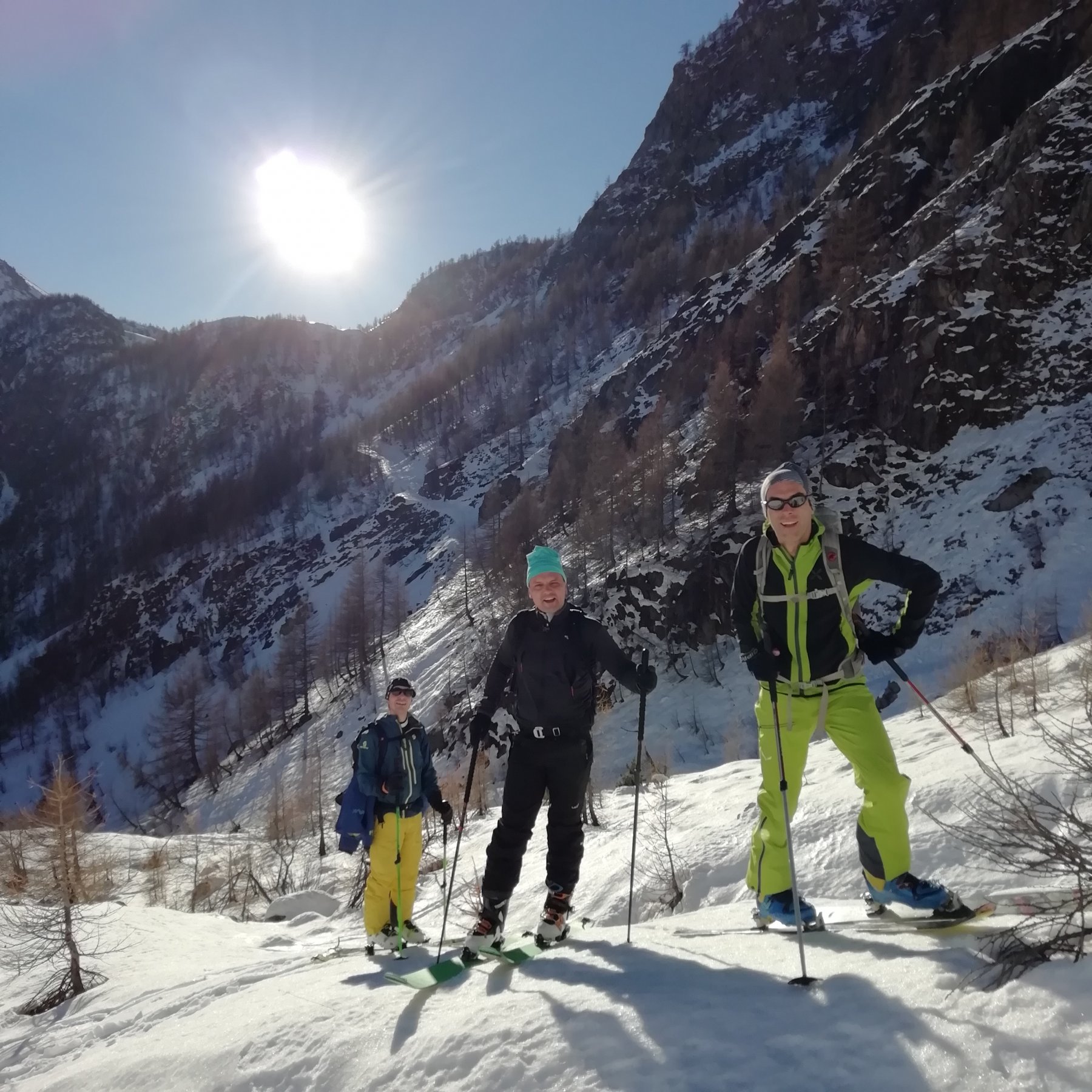 Meta eletta all’ultimo minuto, soprattutto perchè così liscio non l’avevamo ancora visto. Fondo perfetto (parte bassa movimentata di suo), un biliardo. Peccato che fosse marmoreo, nonostante il sole continuo, che non ha scaldato causa aria gelida ma ha reso l’ambiente superbo. Se avesse mollato sarebbe stata perfetta anche la discesa.