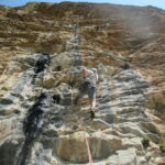 - L7 Altra lunghezza bellissima, la placca ha prese piccole ma nette, il superamento della fessura in alto, da prendere con una mini Dulfer, 6c+