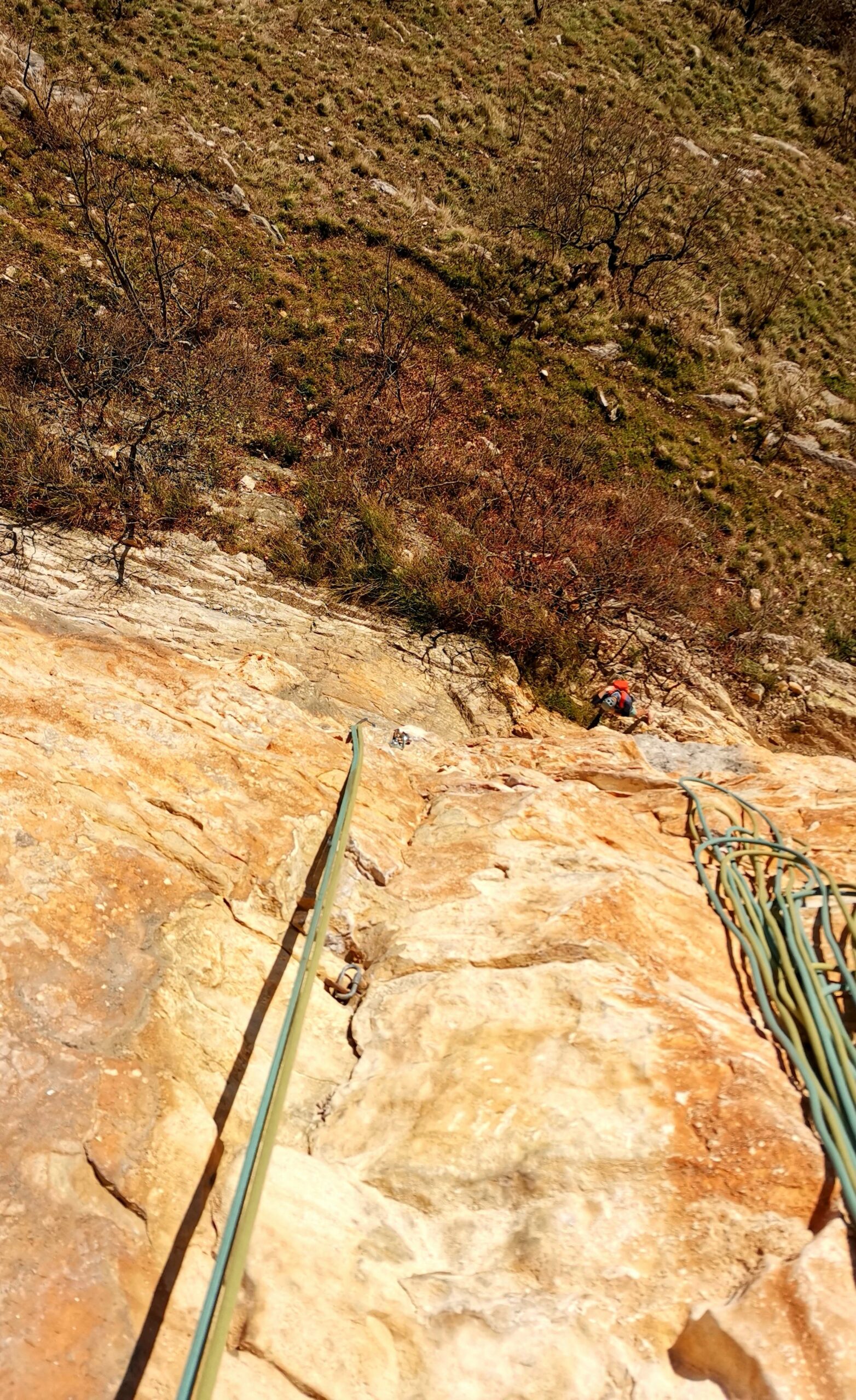 La chiodatura è stata recentemente aggiornata risultando del tutto affidabile e sicura, andrebbero solo cambiati un paio di cordini, peccato non averne avuti altrimenti avremmo provveduto noi.