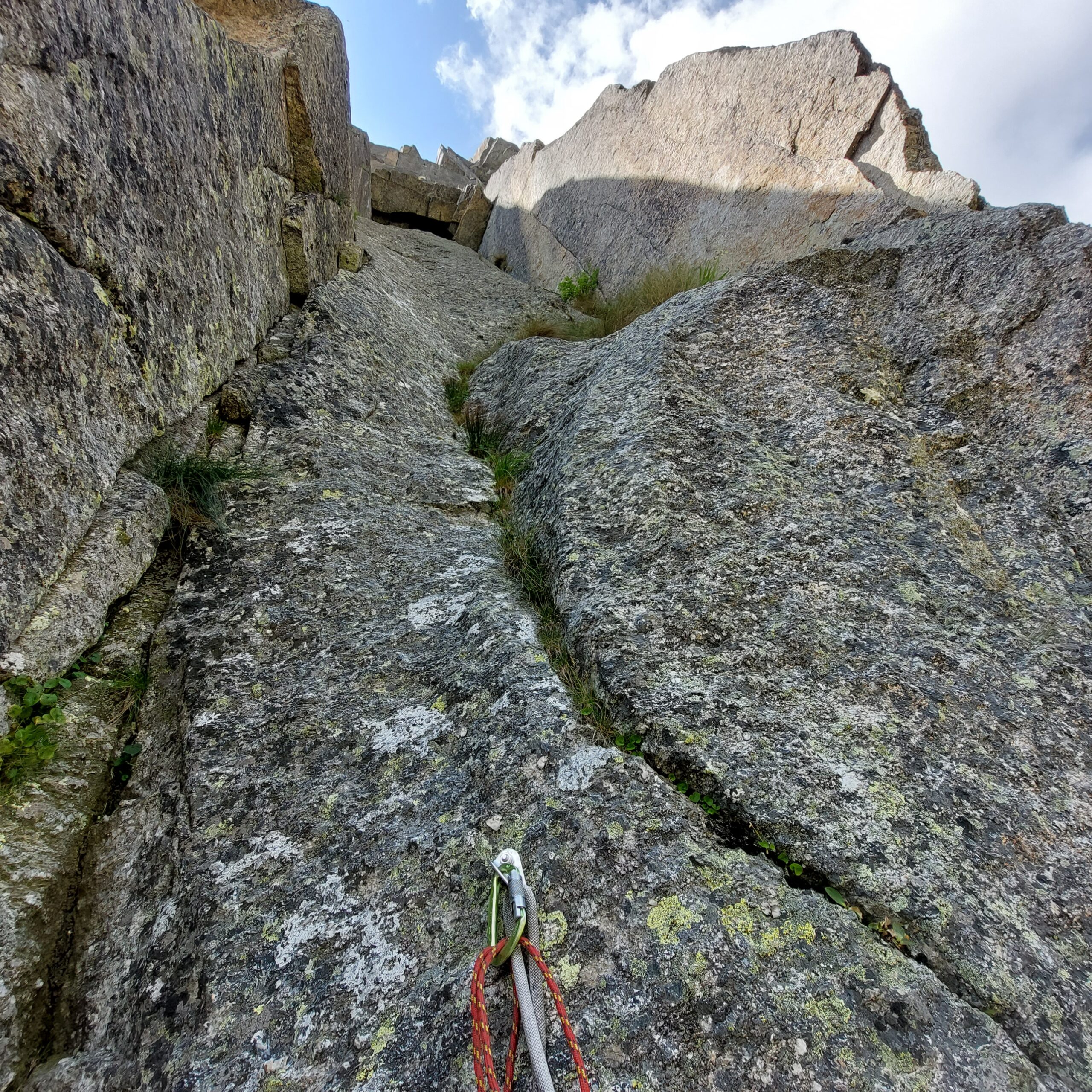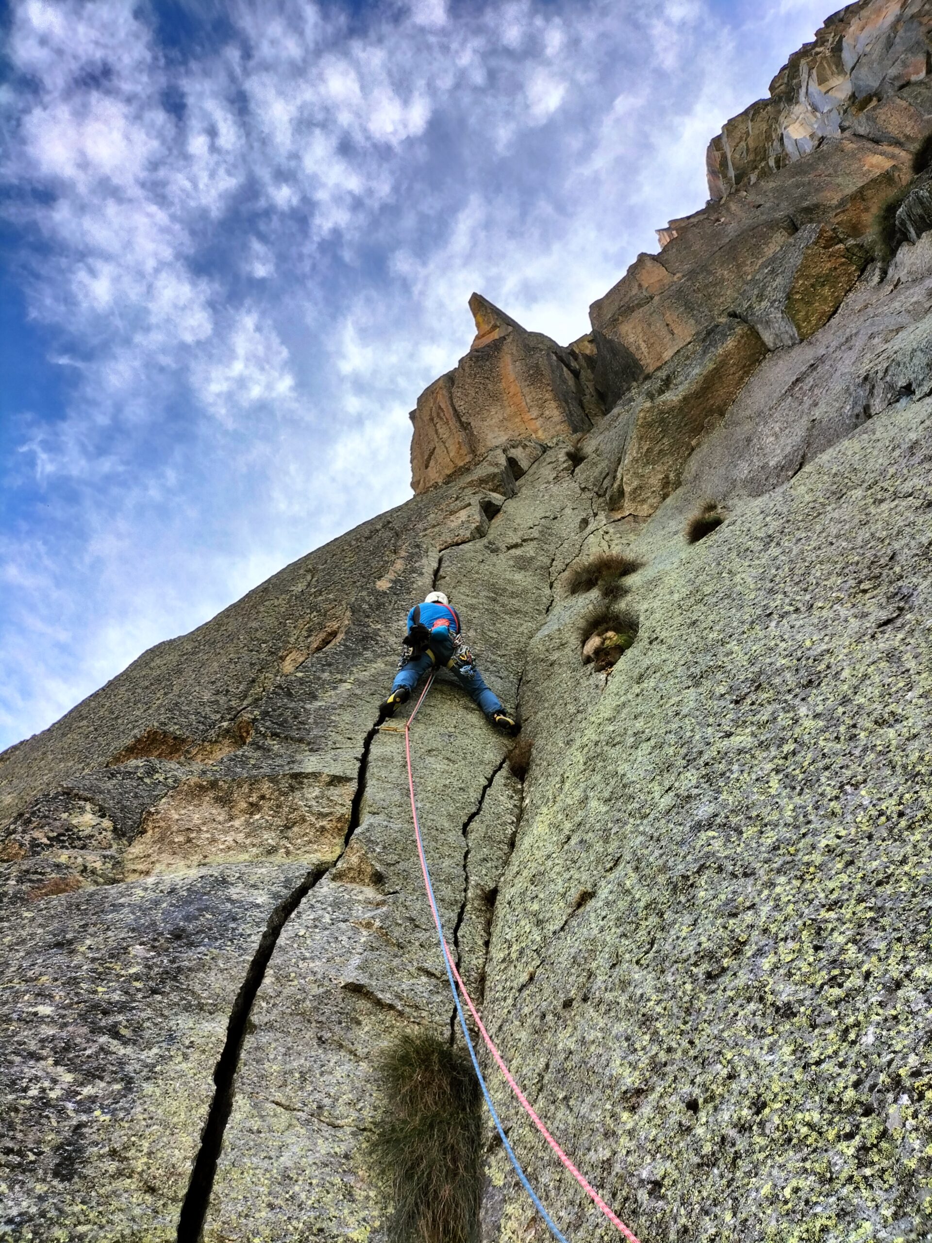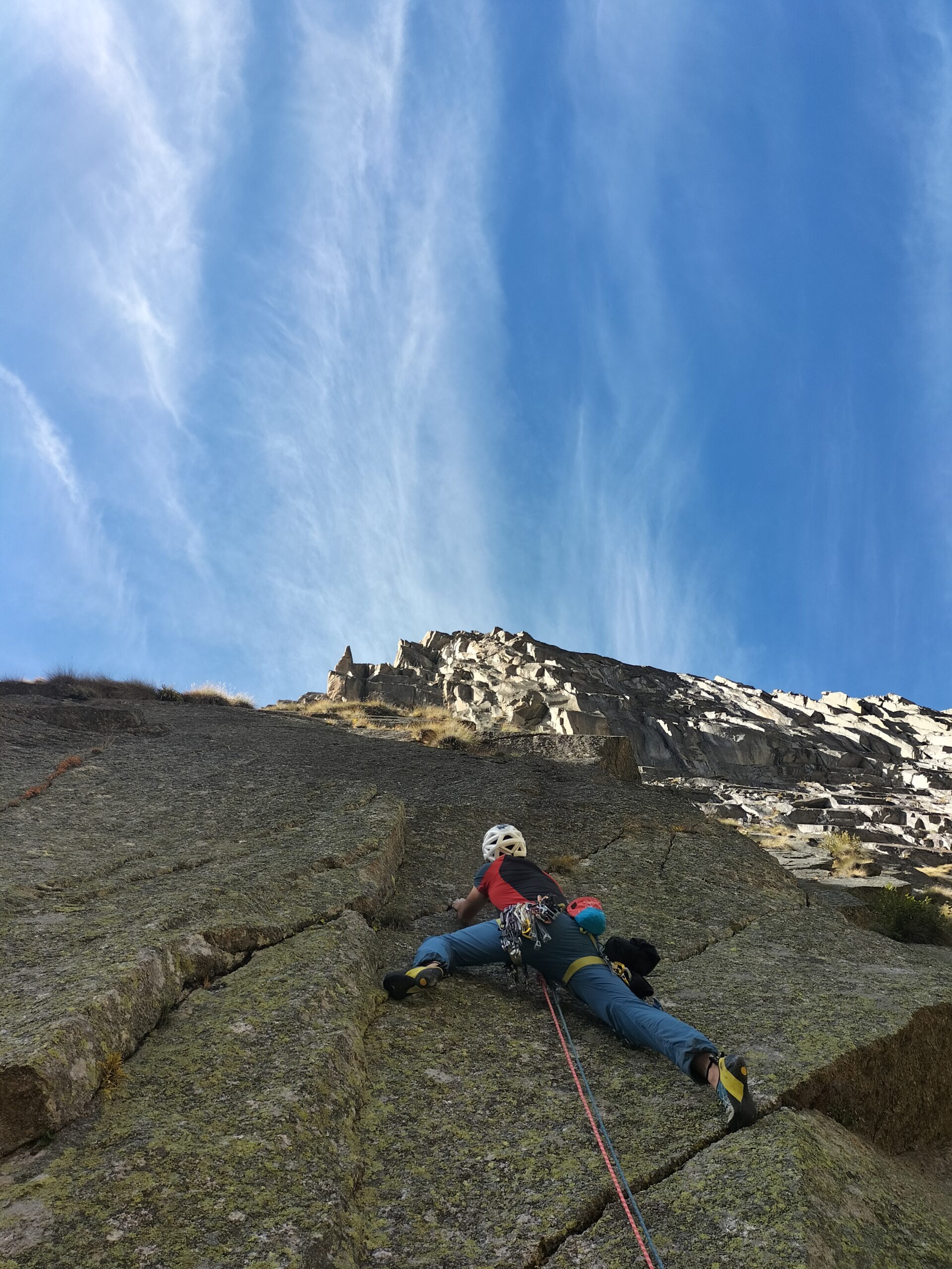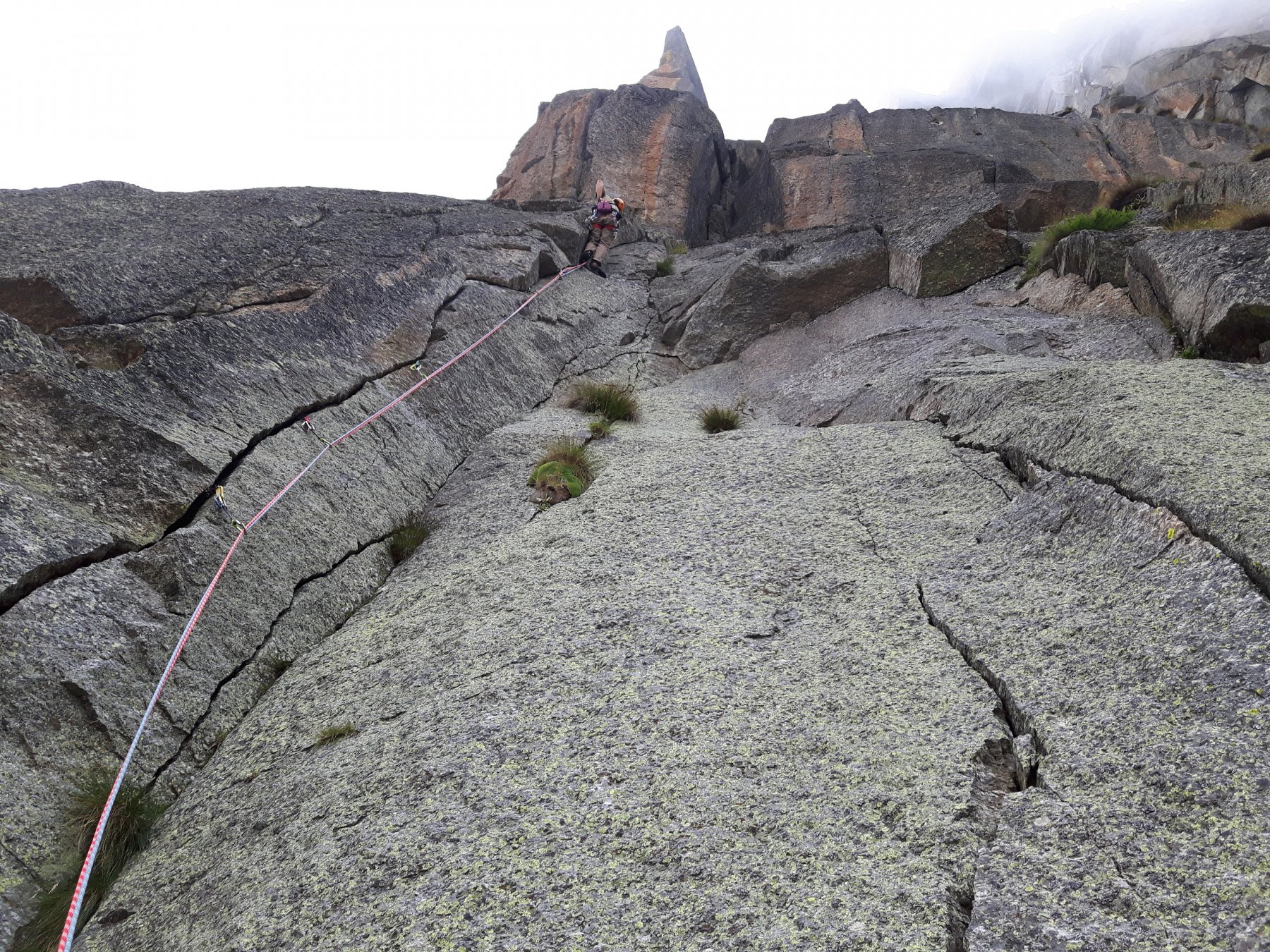 Bellissima via su granito, quasi tutta da proteggere. Arrampicata entusiasmante e mai banale, ben proteggibile.
