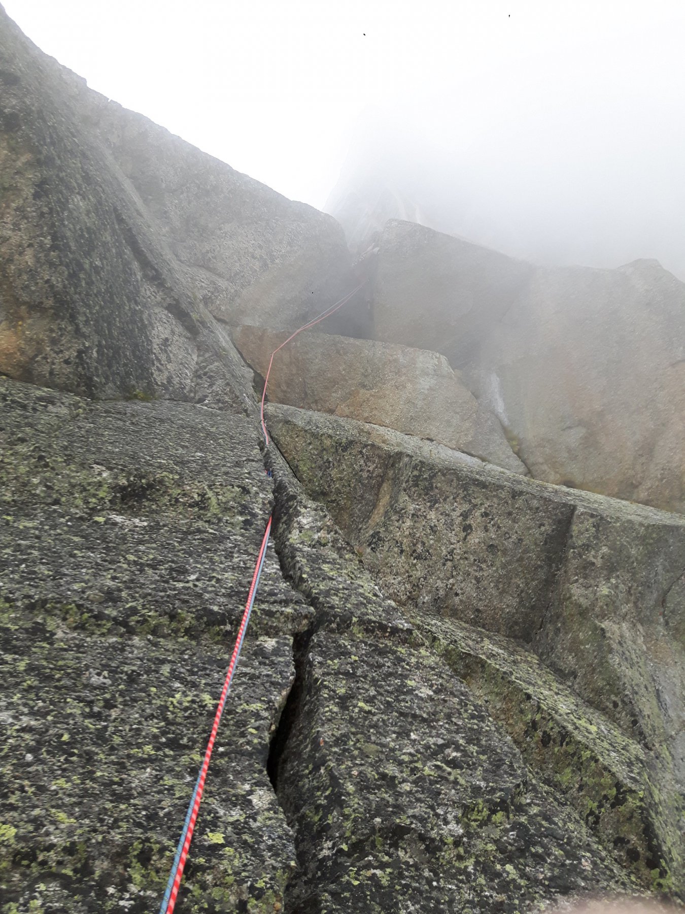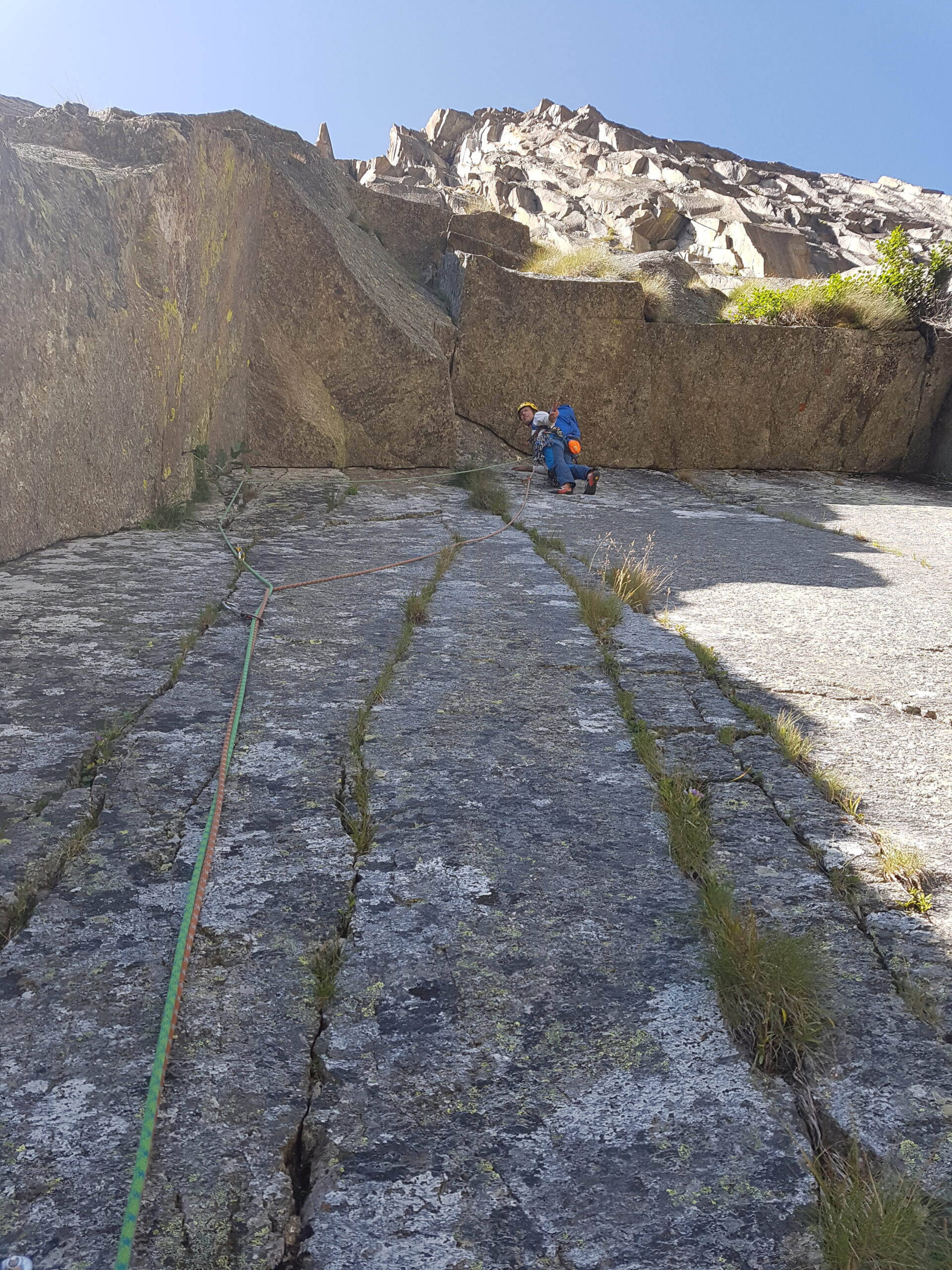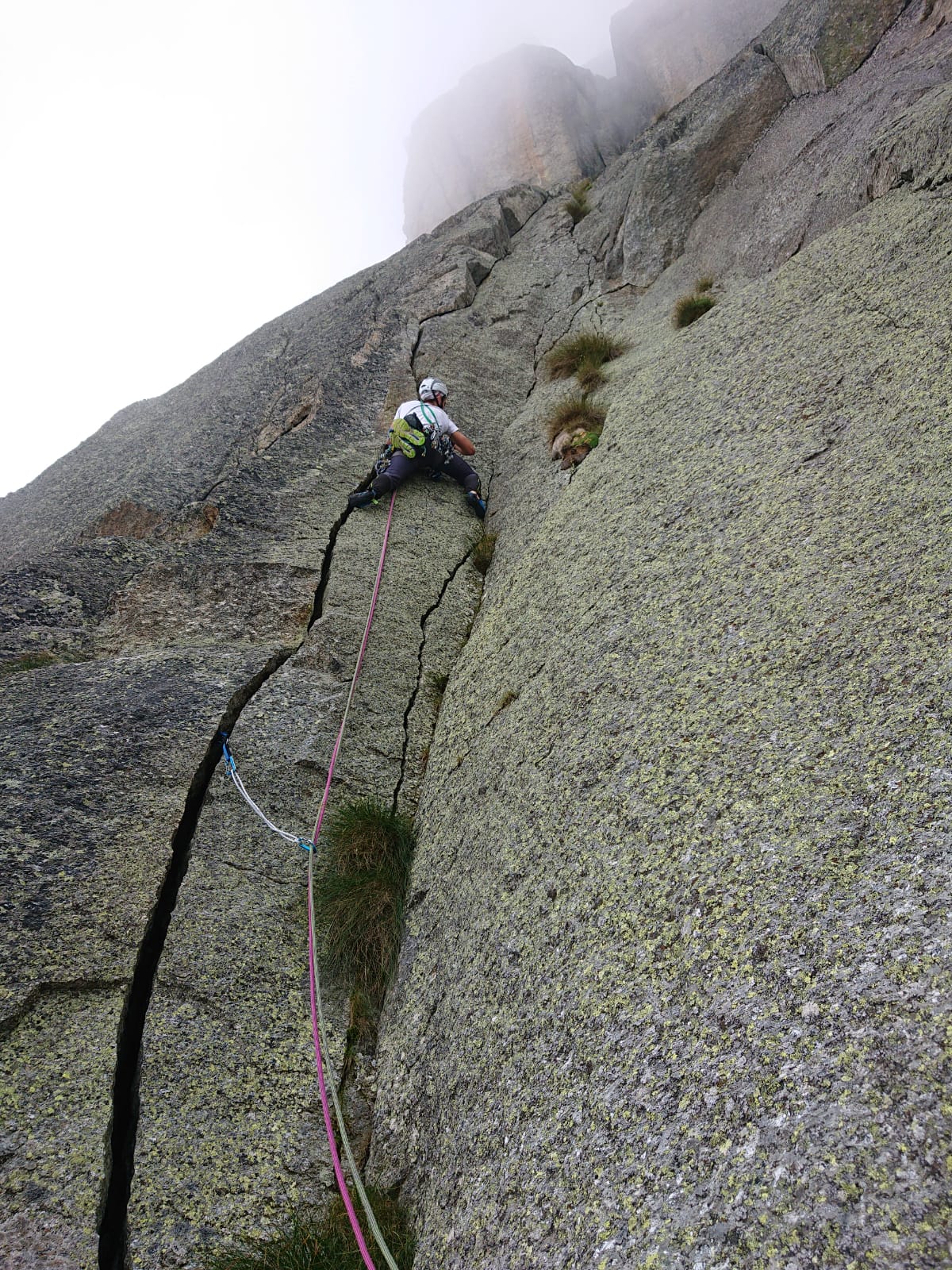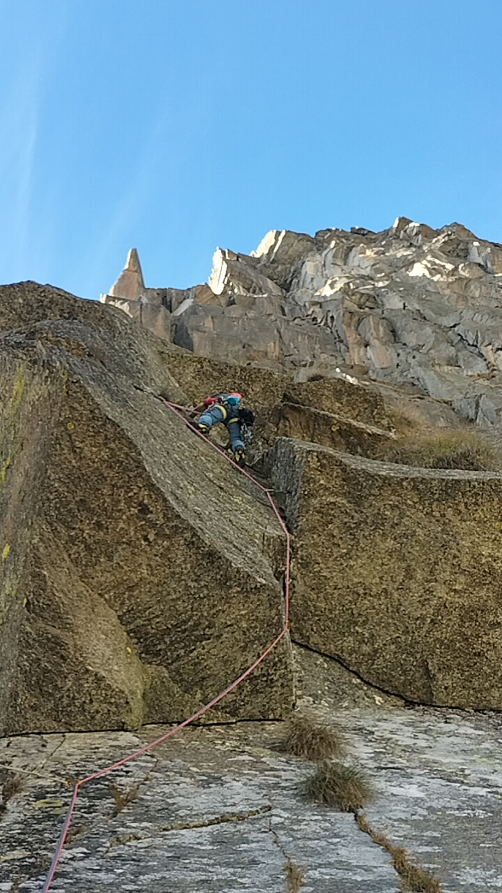 Bellissima via su granito, quasi tutta da proteggere. Arrampicata entusiasmante e mai banale, ben proteggibile.