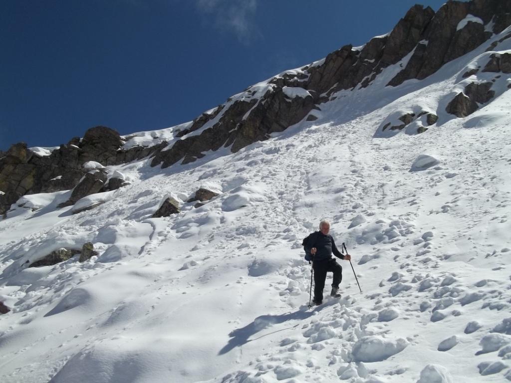 Ancora tanta neve sul versante nord, dove alcuni passaggi, visto anche il ghiaccio, hanno rallentato un po’ la salita.