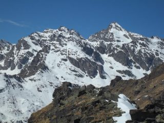 Siamo passati dalla bocchetta dell’Alpetto, raggiunta con una direttissima completamente fuori sentiero, per ripidi pendii e pietraie passando sotto tutta la bastionata del Castello sul suo versante sud