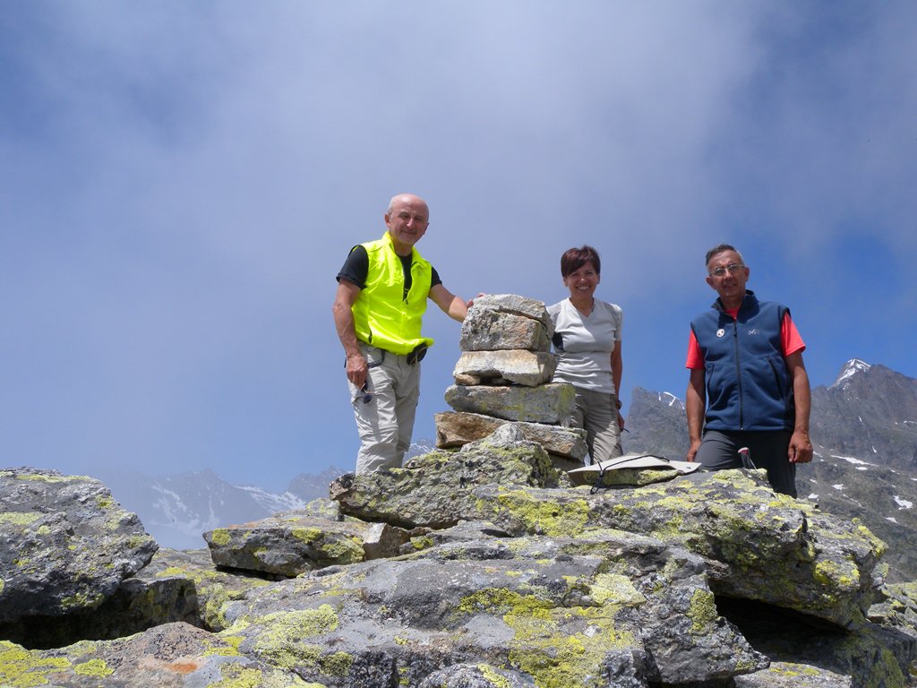 Oggi“Aria Alto Canavese” e allora la meta Monte Castello. Escursione magnifica in ambiente magnifico, eccezionale la vista sul nostro GRANPA. Gran girone che con vari saliscendi tocca il dislivello di circa 1600 mt e sviluppo di 22 Km. Dalla Bocchetta dell’Alpetto in 30/35 m seguendo le tacche rosse un pò sbiadite si tocca l’omone di vetta, in qualche passaggio occorre aiutarsi con le mani . La mulattiera Reale che sale alla bocchetta del Ges è ormai semi-trasformata dalle intemperie (qualche anno fa la ricordavamo meglio conservata) , più discreta quella che scende sulla Casa di Caccia . Gita (anche solo il giro delle due bocchette) da fare con garanzia di bel tempo per assaporare a pieno questi luoghi meravigliosi nel cuore del Parco e con rammarico spesso dimenticati. Con gli amici Maury ed EU