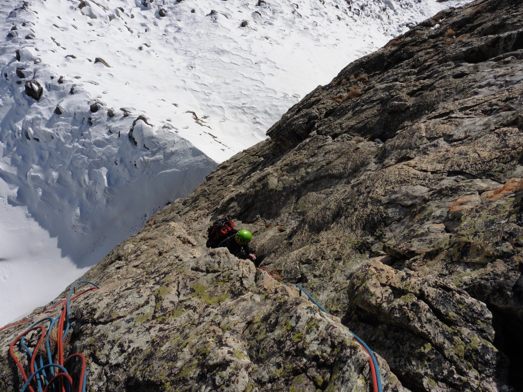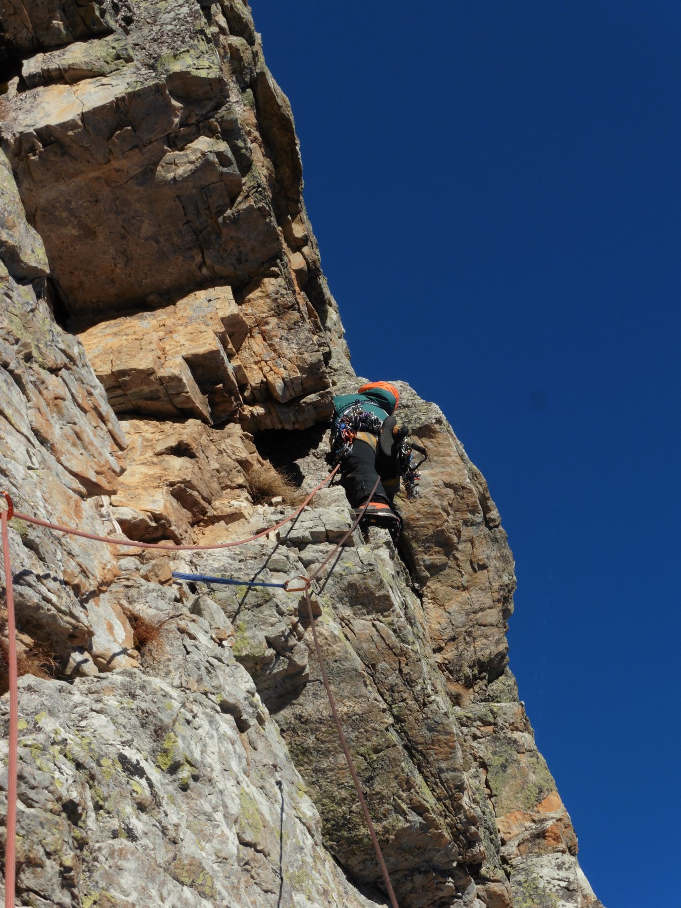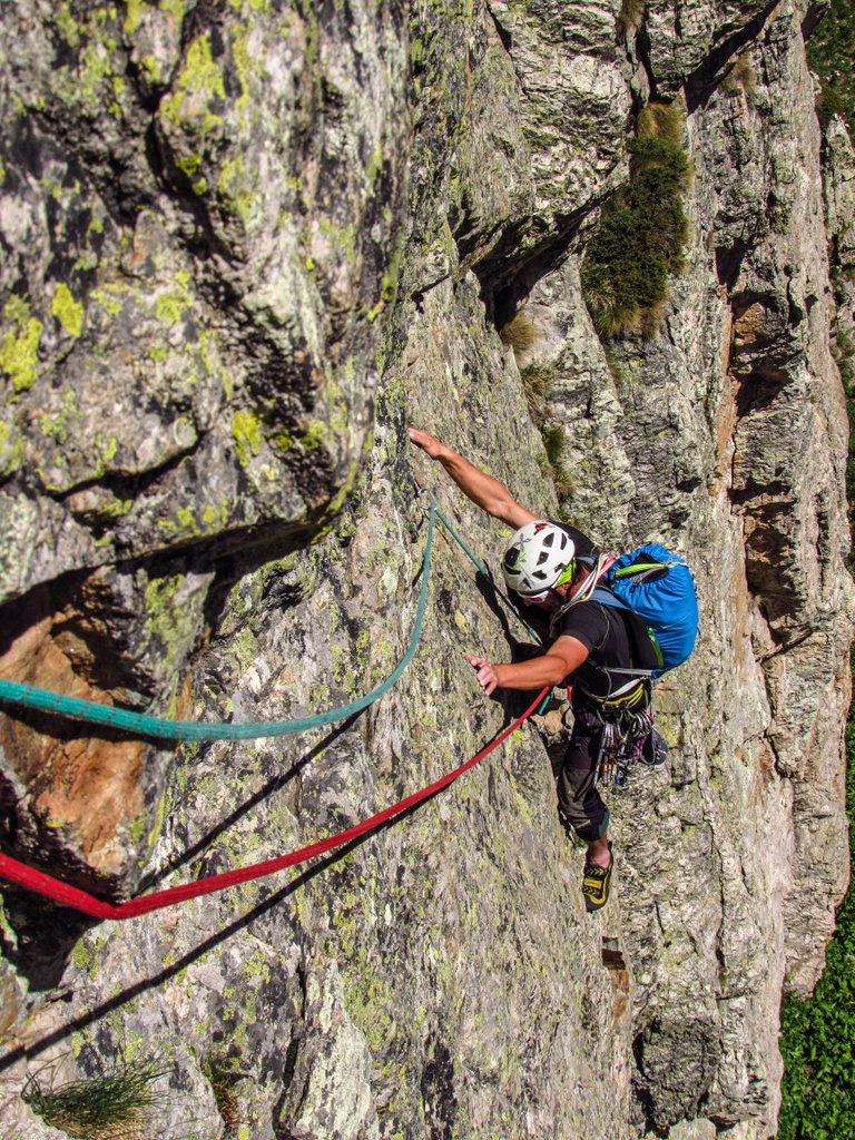 Itinerario classico, molto ben chiodato nella prima parte (Bàlzola) con soste attrezzate per calate (utili nut e friend) e a sufficienza nella seconda parte (necessari nut e friend).