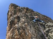Bella via di stampo classico, soste attrezzate ed eventualmente da rinforzare, sui tiri sono presenti alcuni chiodi.