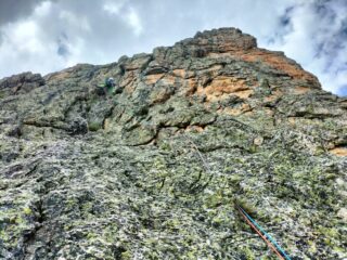 L5 non seguire il diedro a sinistra dove si trovano i chiodi ma stare sul muro rosso leggermente a destra. Passaggio tecnico.