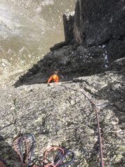 Per tastare le condizioni, attacchiamo la Sigismondi, poi dal cengione vediamo che è tutto ok e proseguiamo lungo Solo per Bruna.