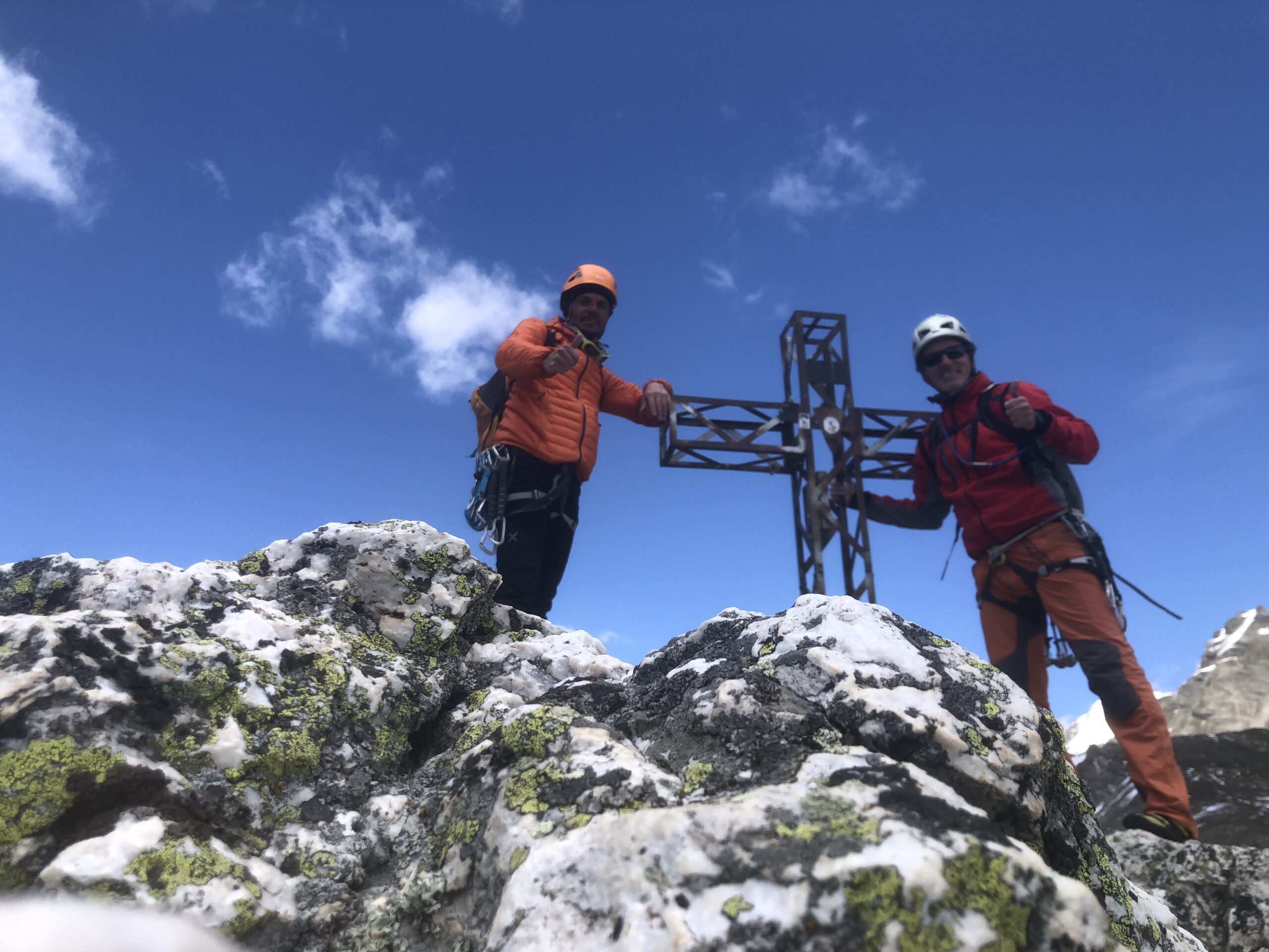 Segnalo solo la sosta di calata sotto la croce sommitale: uno dei due spit sarebbe da stringere con una chiave.