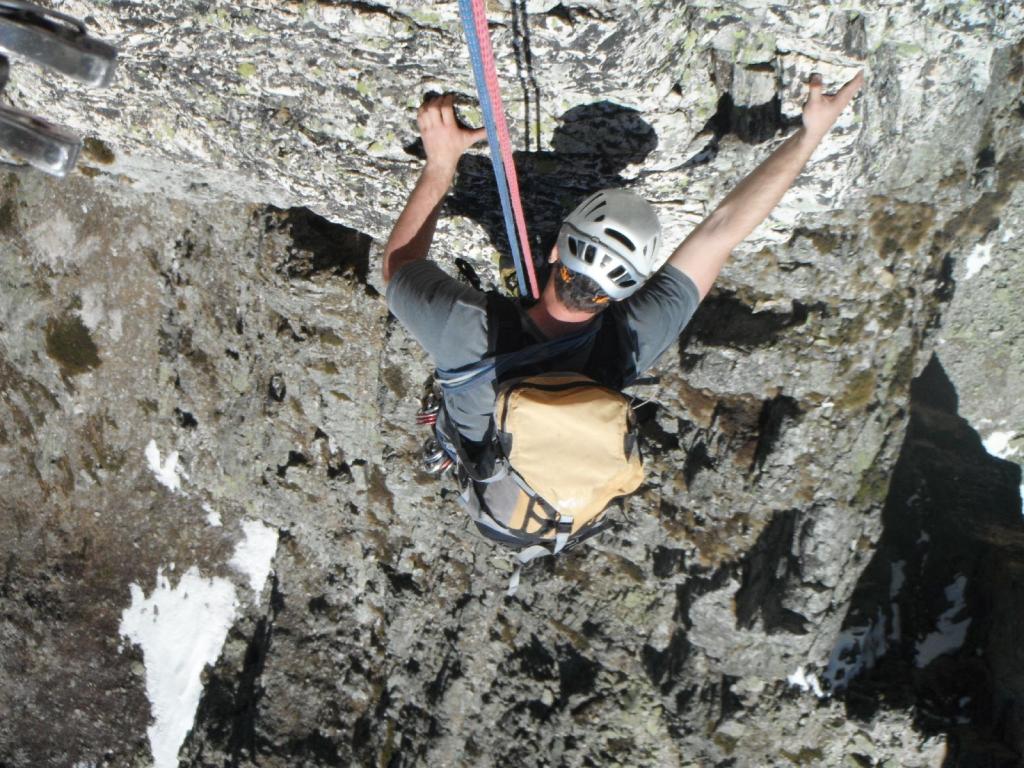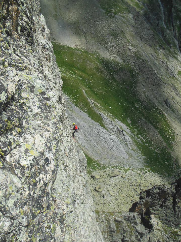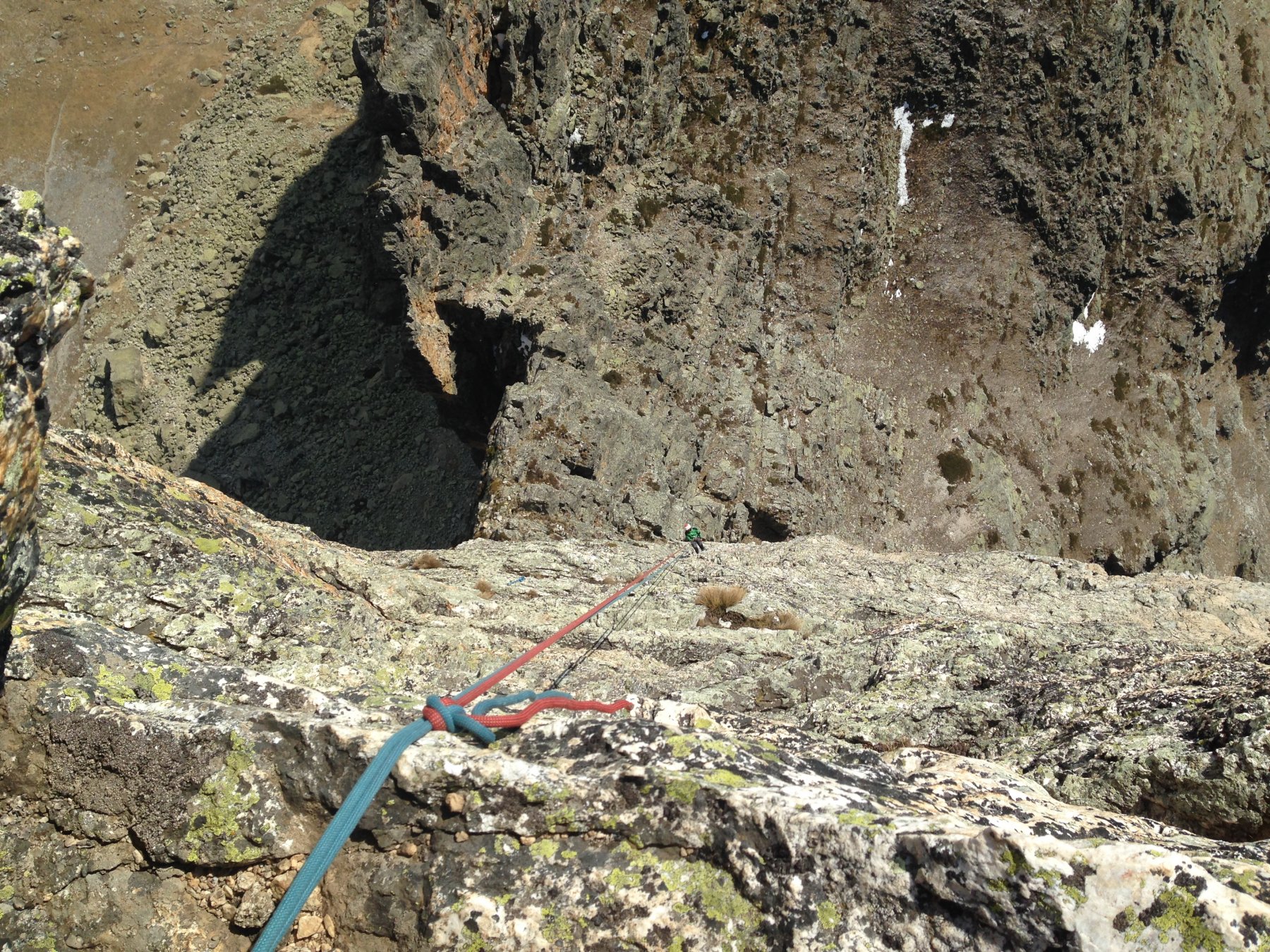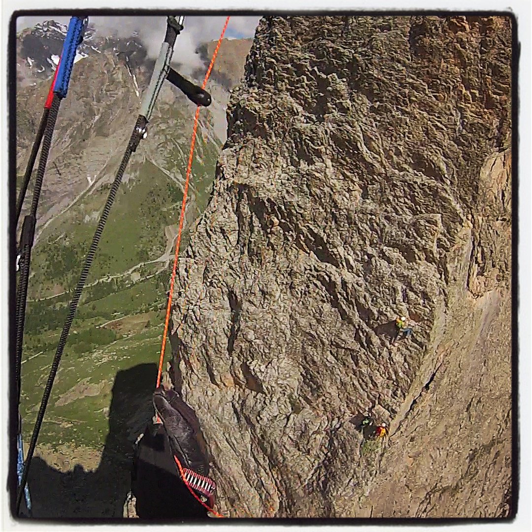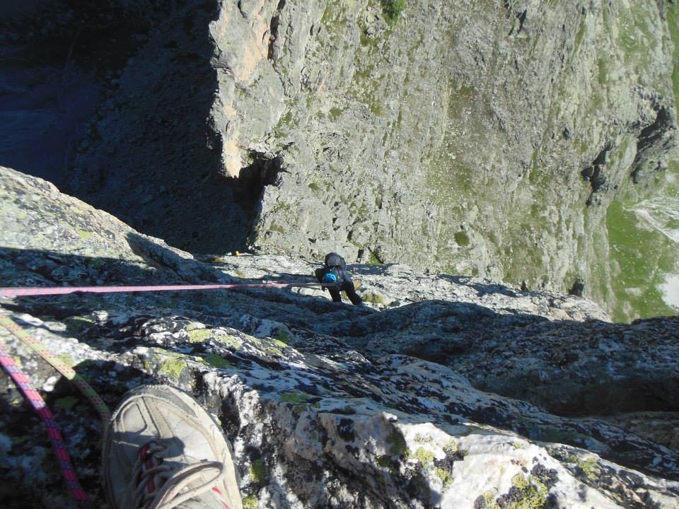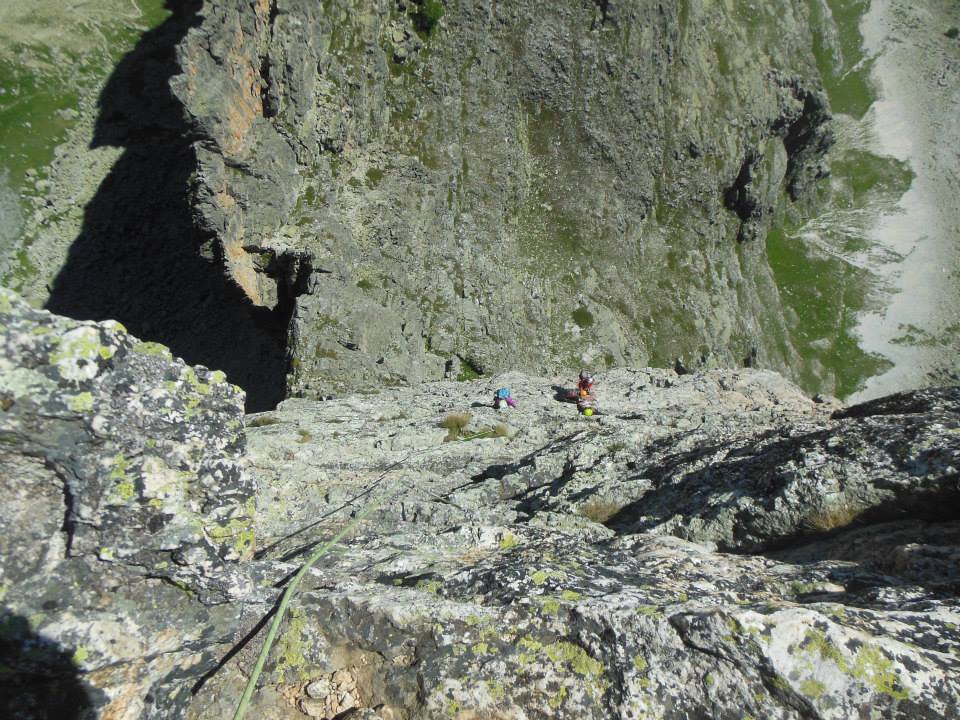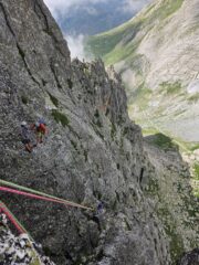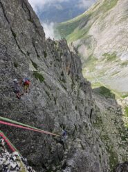 - in doppia lungo la nuova via Alpi Ovest (6 calate)