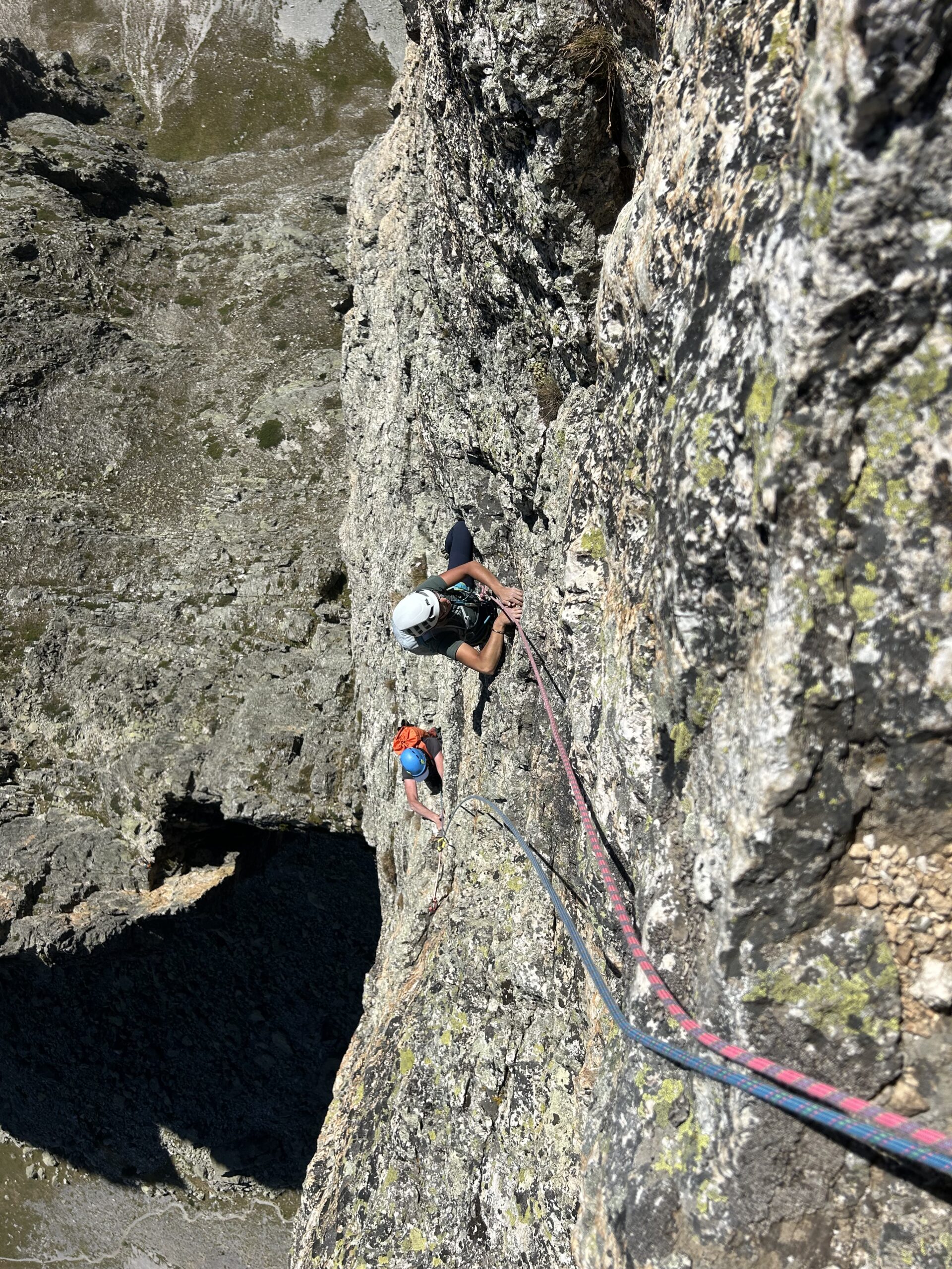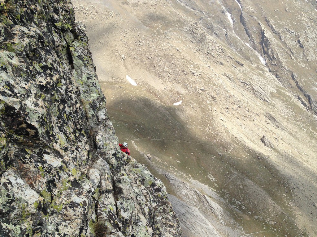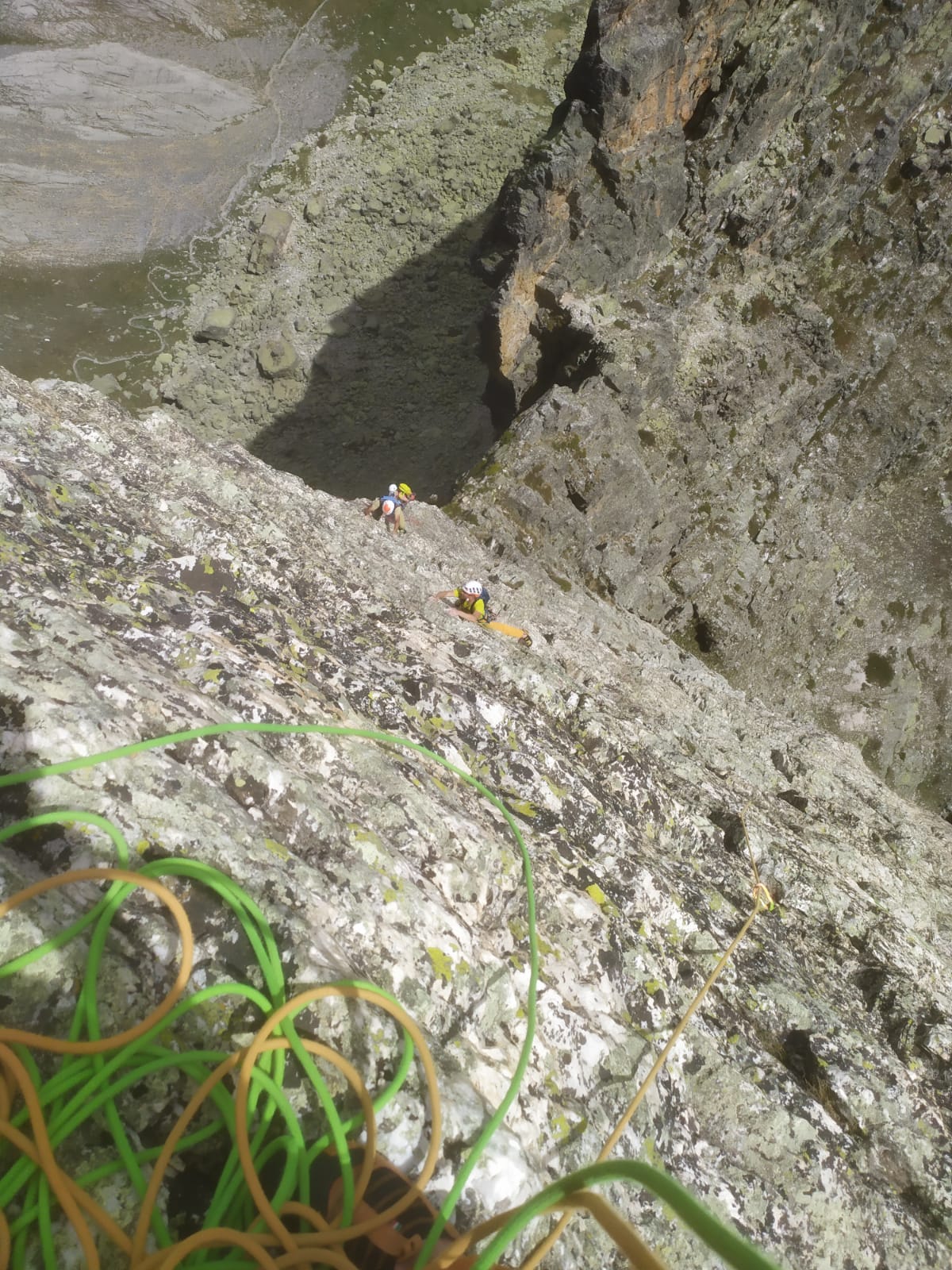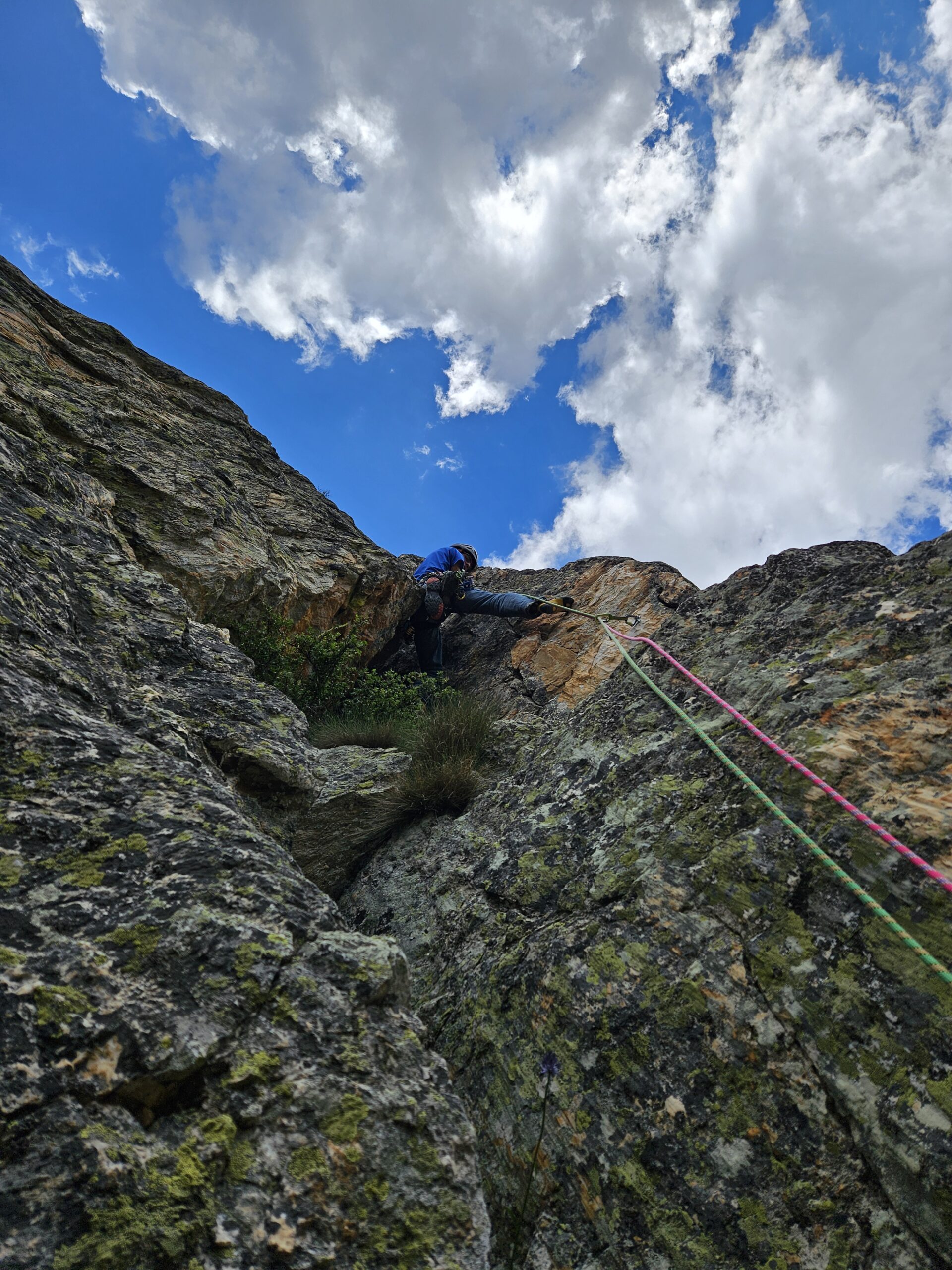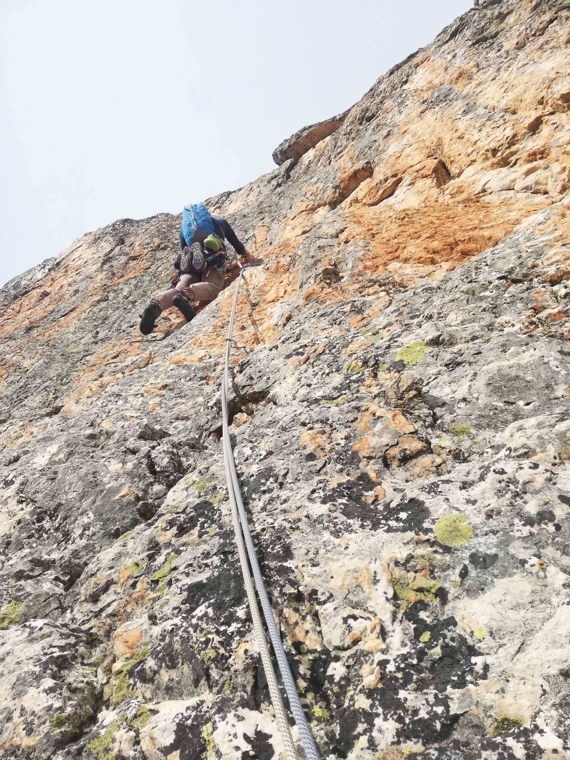 - in doppia lungo la nuova via Alpi Ovest (6 calate)