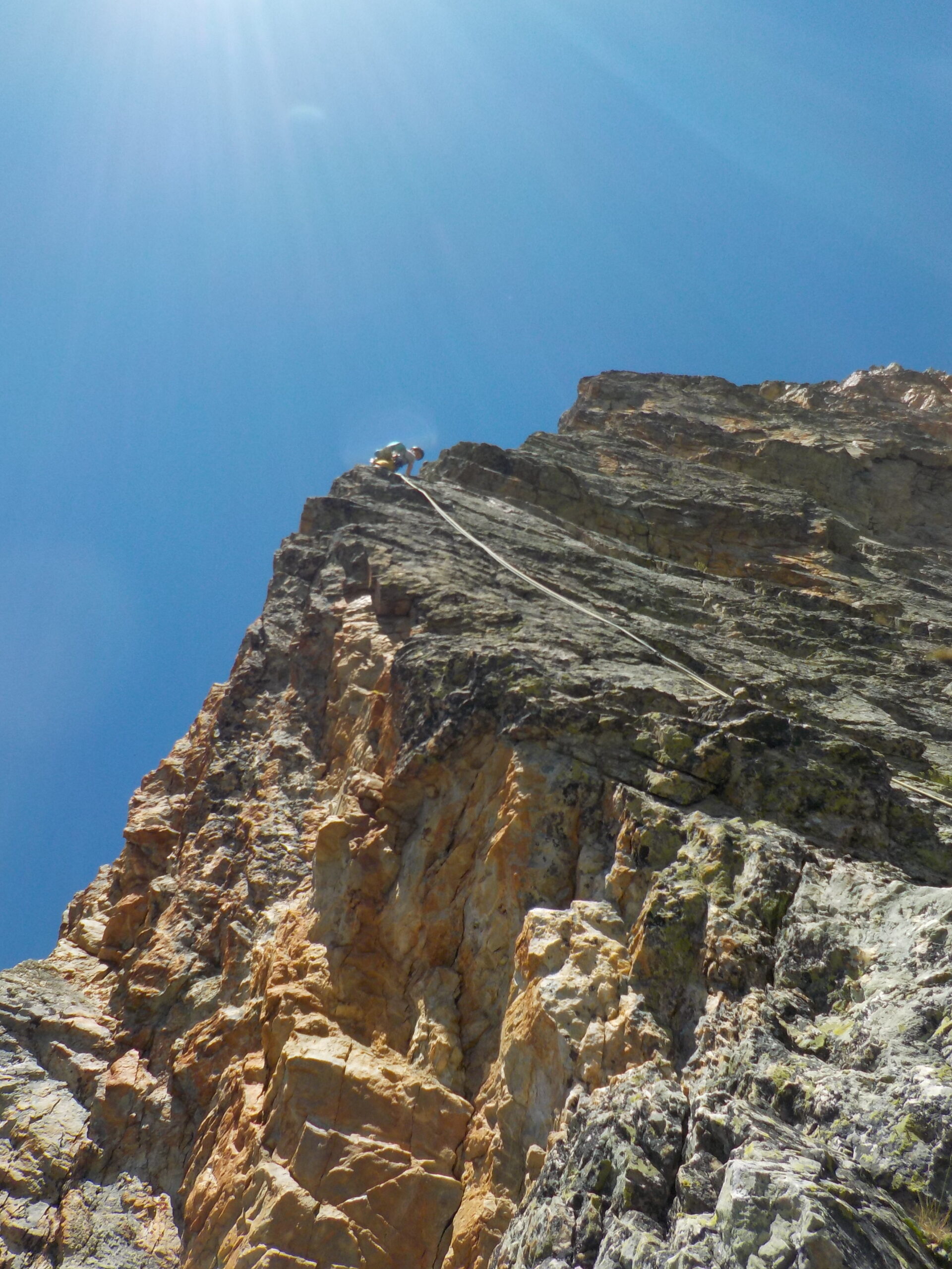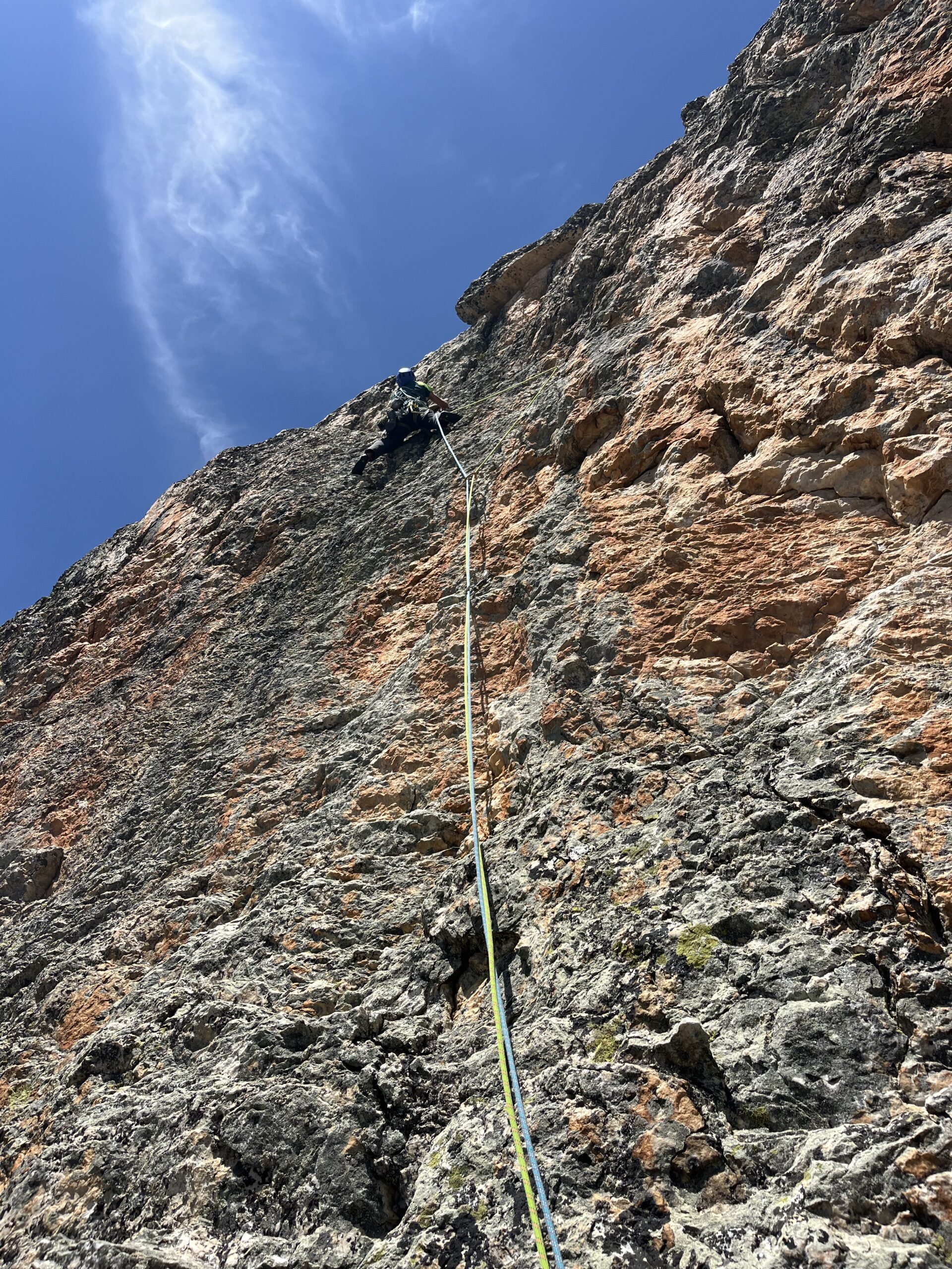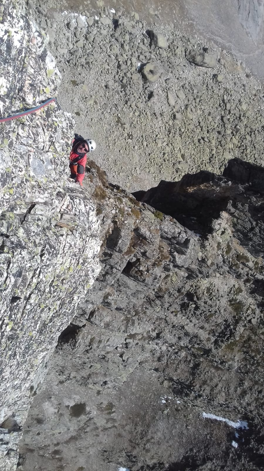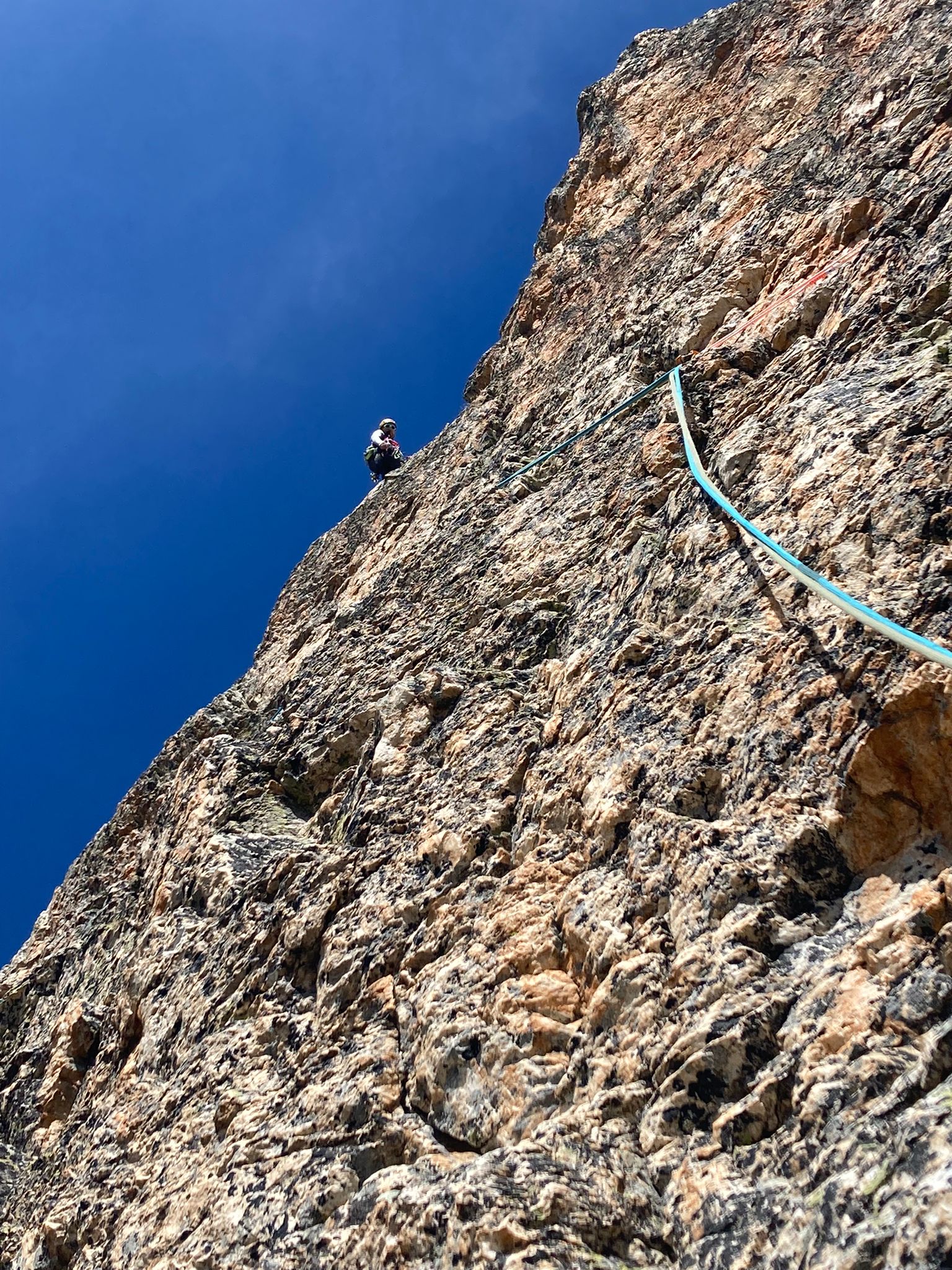 - in doppia lungo la nuova via Alpi Ovest (6 calate)