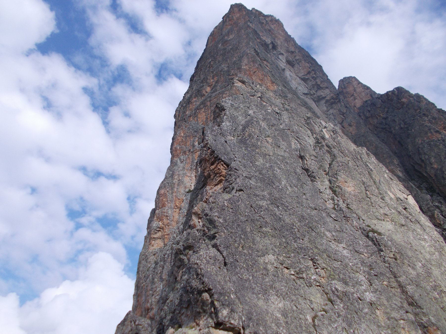 L5: Da qui la via è in comune: salire diritti (in direzione di un nut incastrato e non a sx dove si vedono dei chiodi causa sfregamento corde) quasi sul filo dello spigolo. 40m (IV)