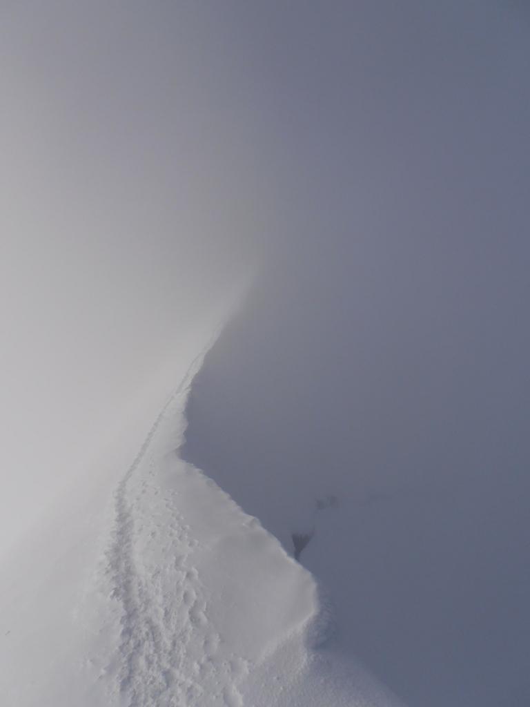 Se la terminale è troppo aperta, si taglia a sx in diagonale un pendio ripido e per un canalino si raggiunge la cresta ad una spalla, da cui in breve alla cresta aerea e alla vetta.